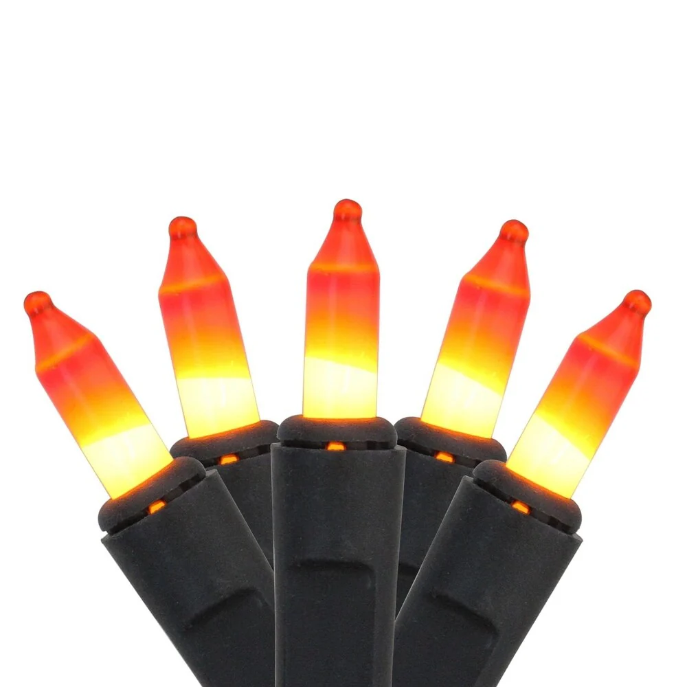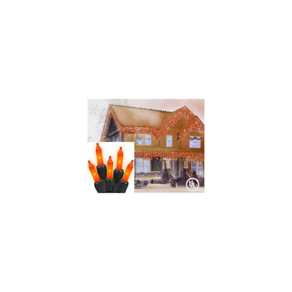 Set of 100 Orange Mini Icicle Halloween or Christmas Lights - Black Wire