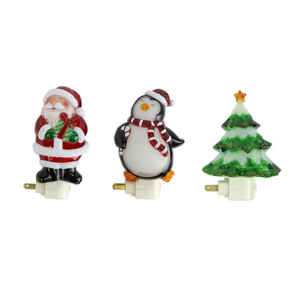 Set of 3 Glittered Santa Claus Penguin and Christmas Tree Holiday Night Lights 6.25"
