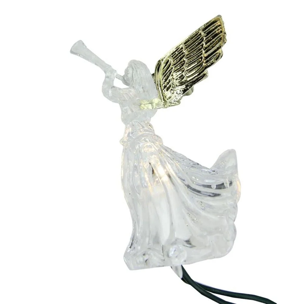 Set of 10 LED Lighted Gold and Clear Trumpeting Angel Christmas Lights