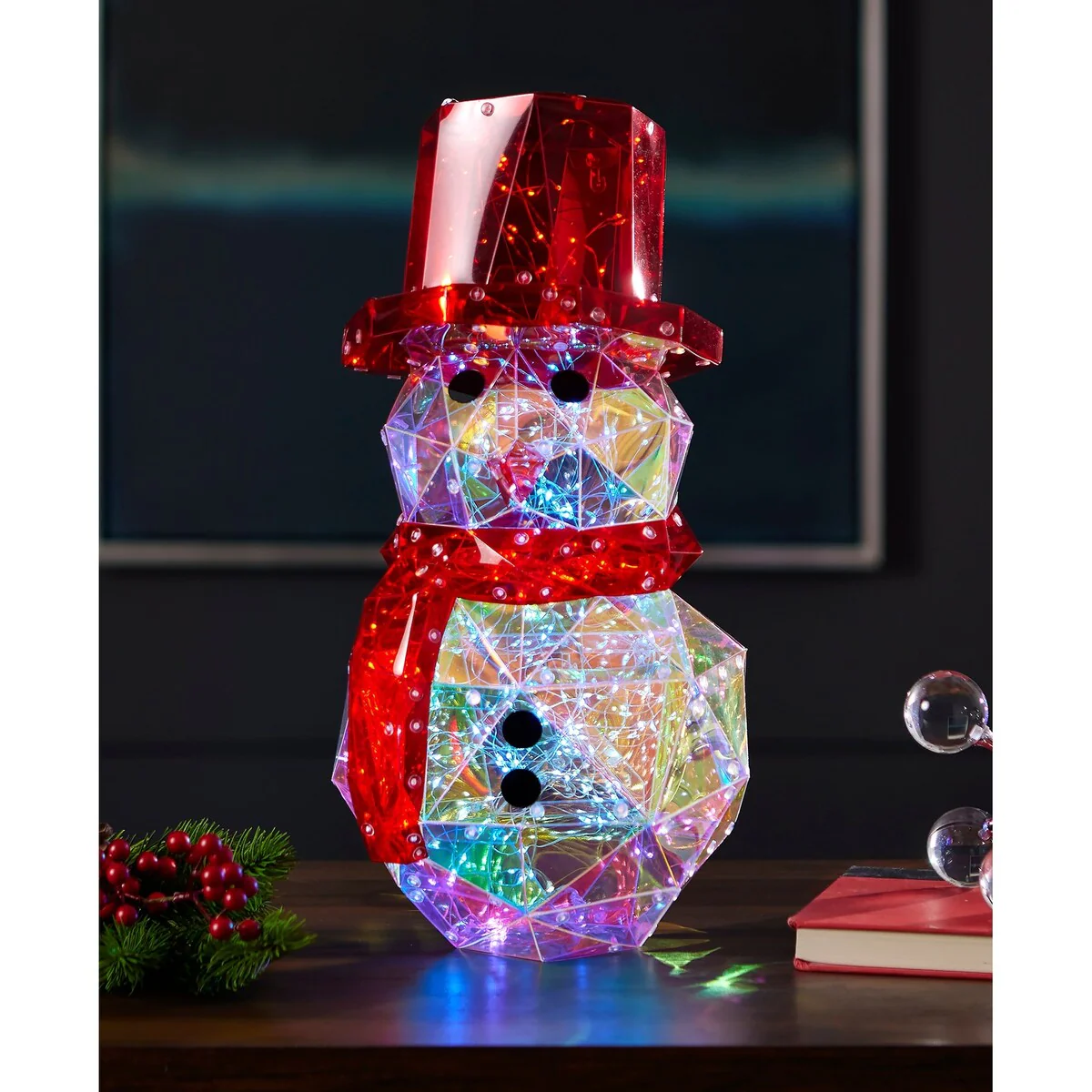 Prismatic Iridescent Snowman 16", LED lights