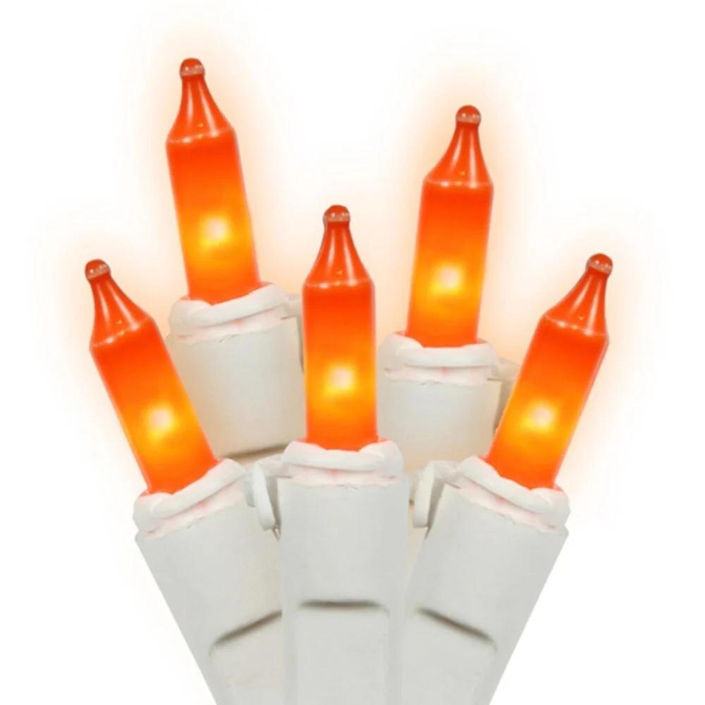 Set of 100 Opaque Orange Mini Christmas Lights - White Wire