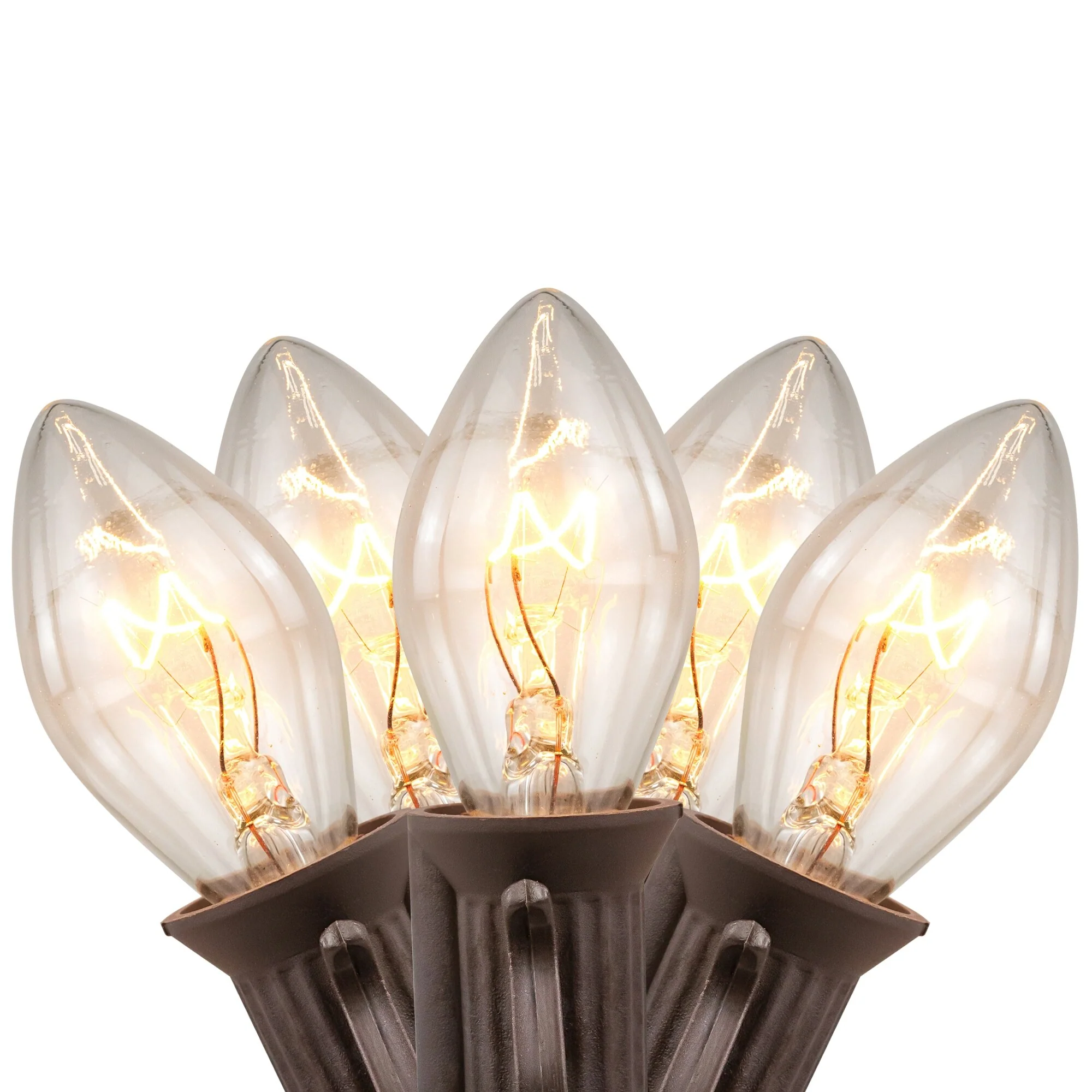 25 Count Clear C7 Christmas Lights, 24ft Brown Wire