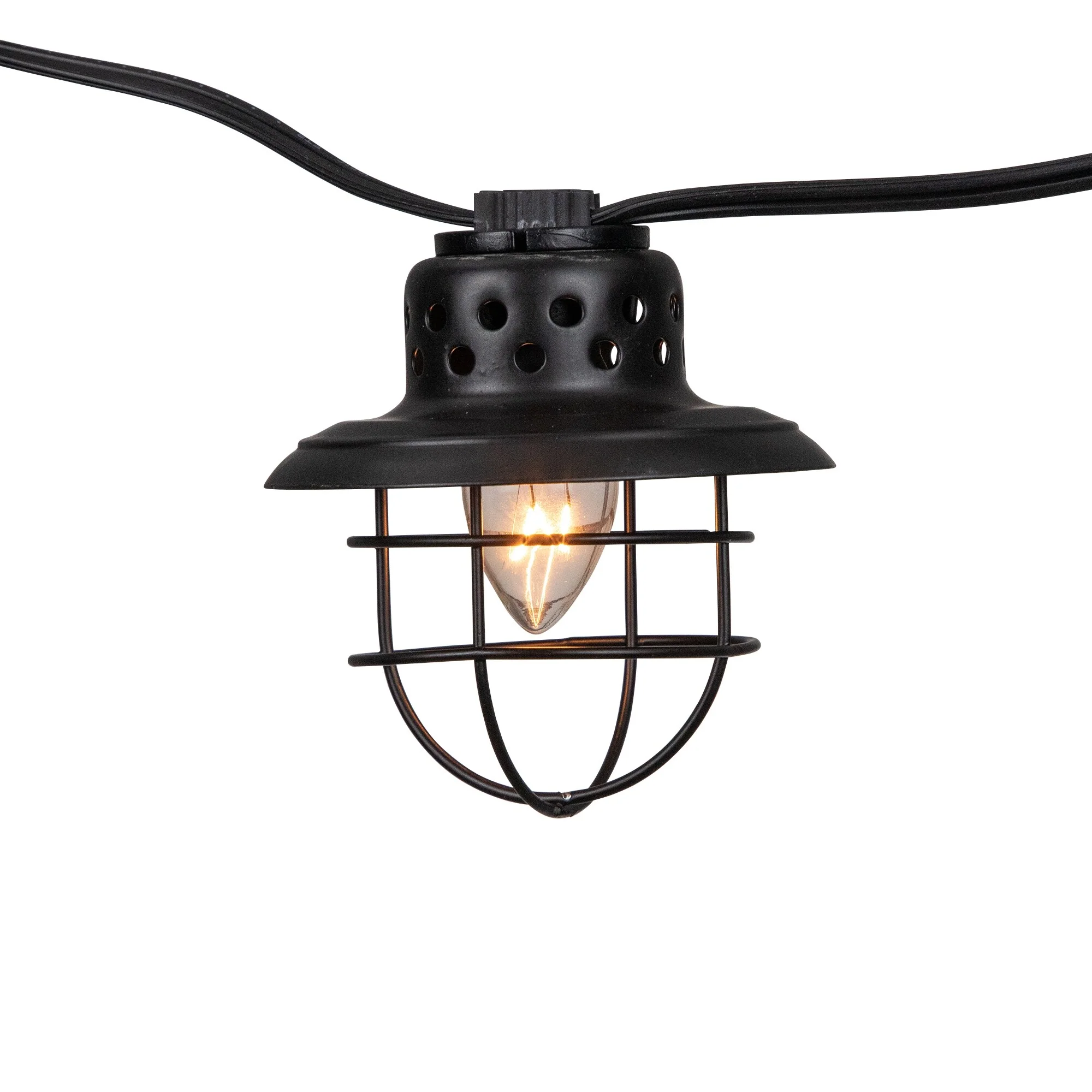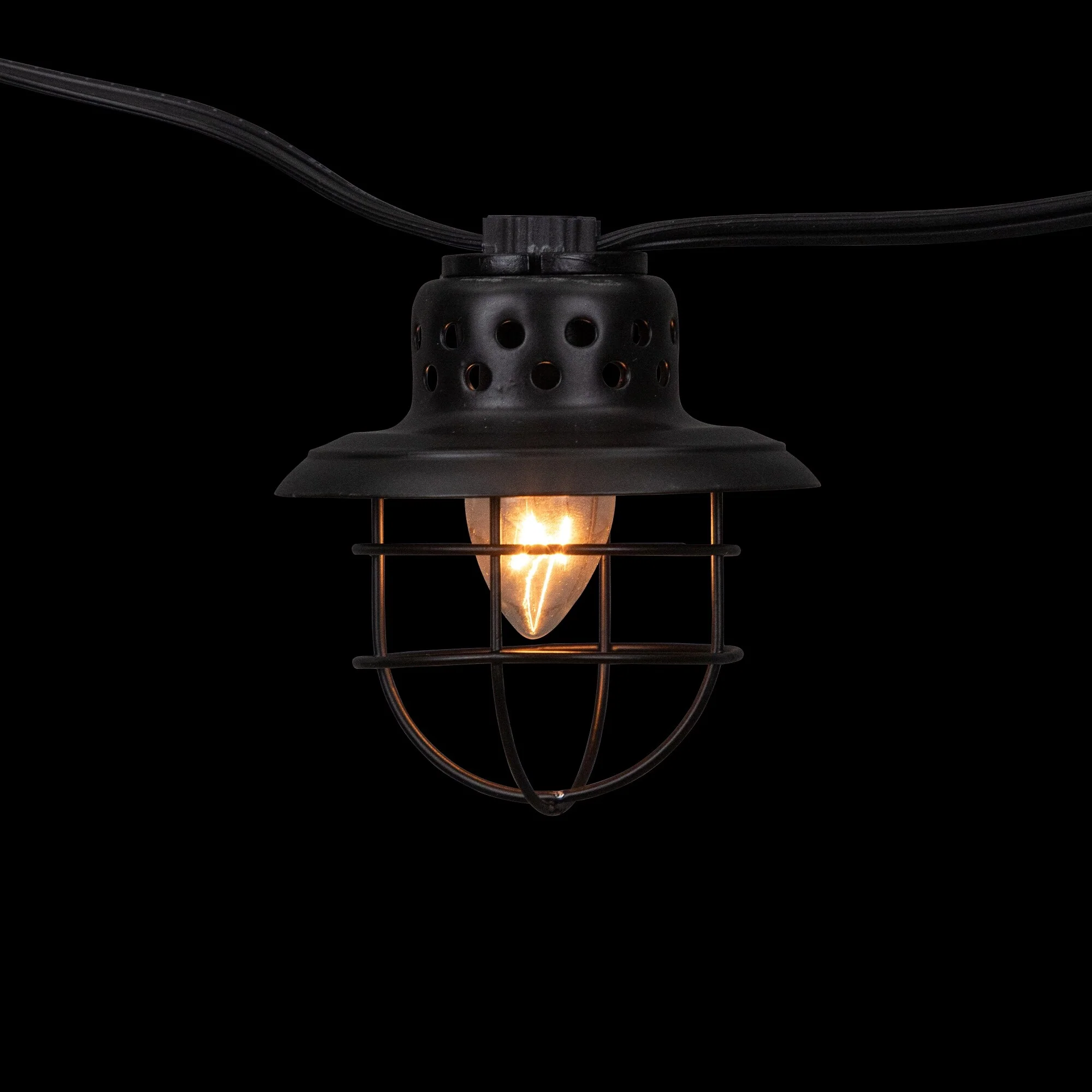 10-Count Black Caged Fisherman Lantern Patio String Light Set - 9' Black Wire