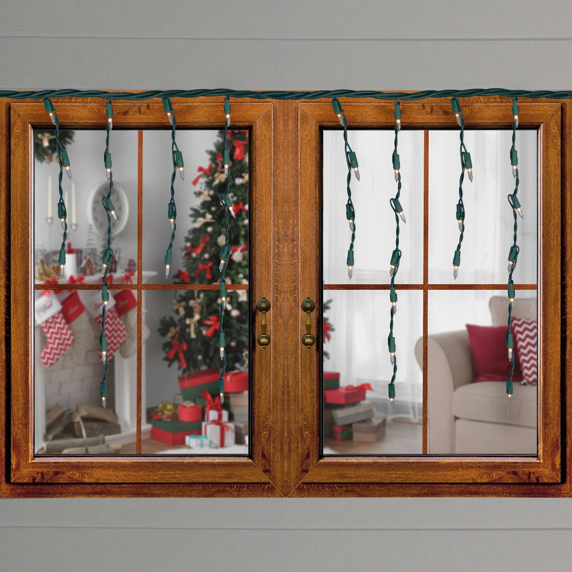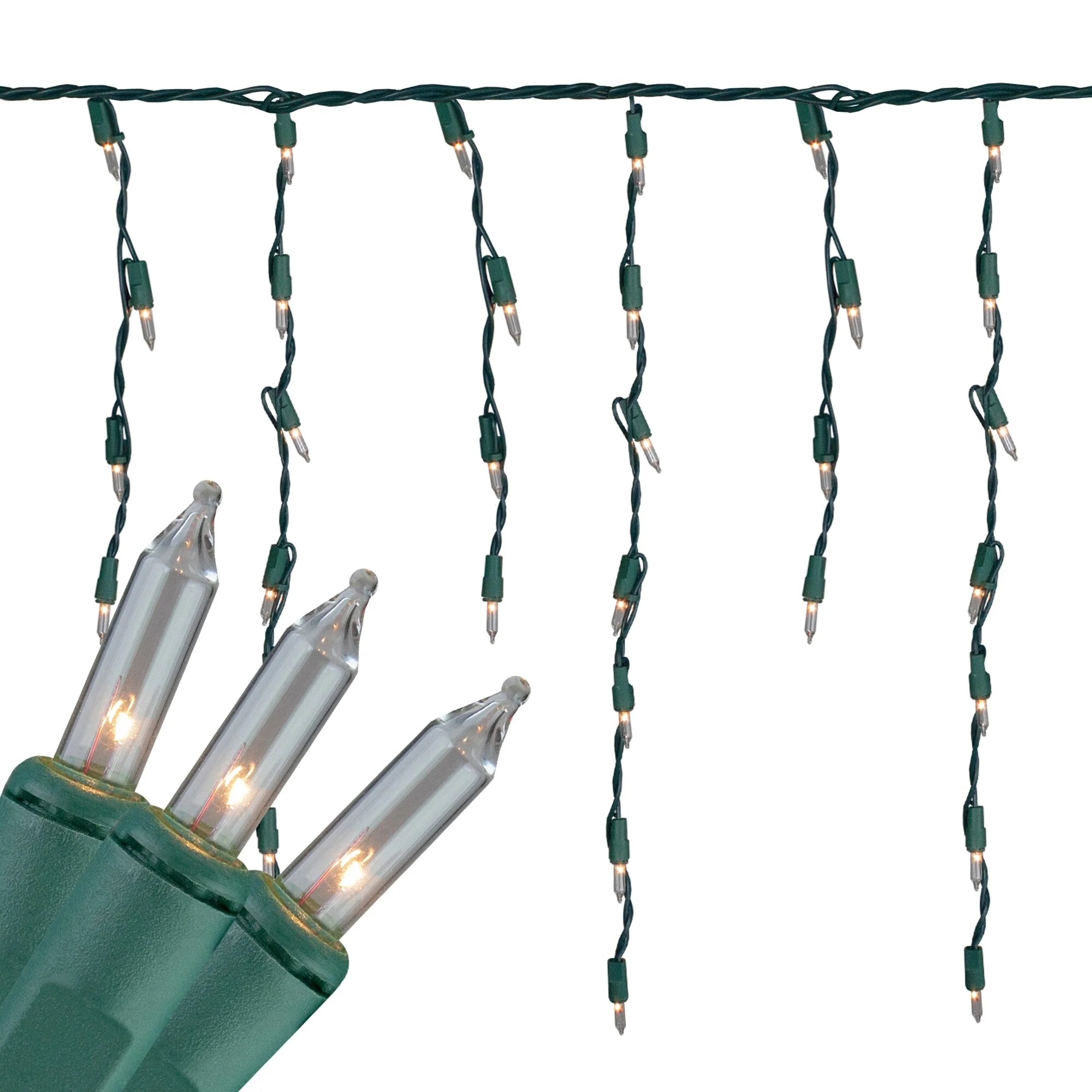 100-Count Clear Mini Icicle Christmas Lights, 5.5 ft Green Wire