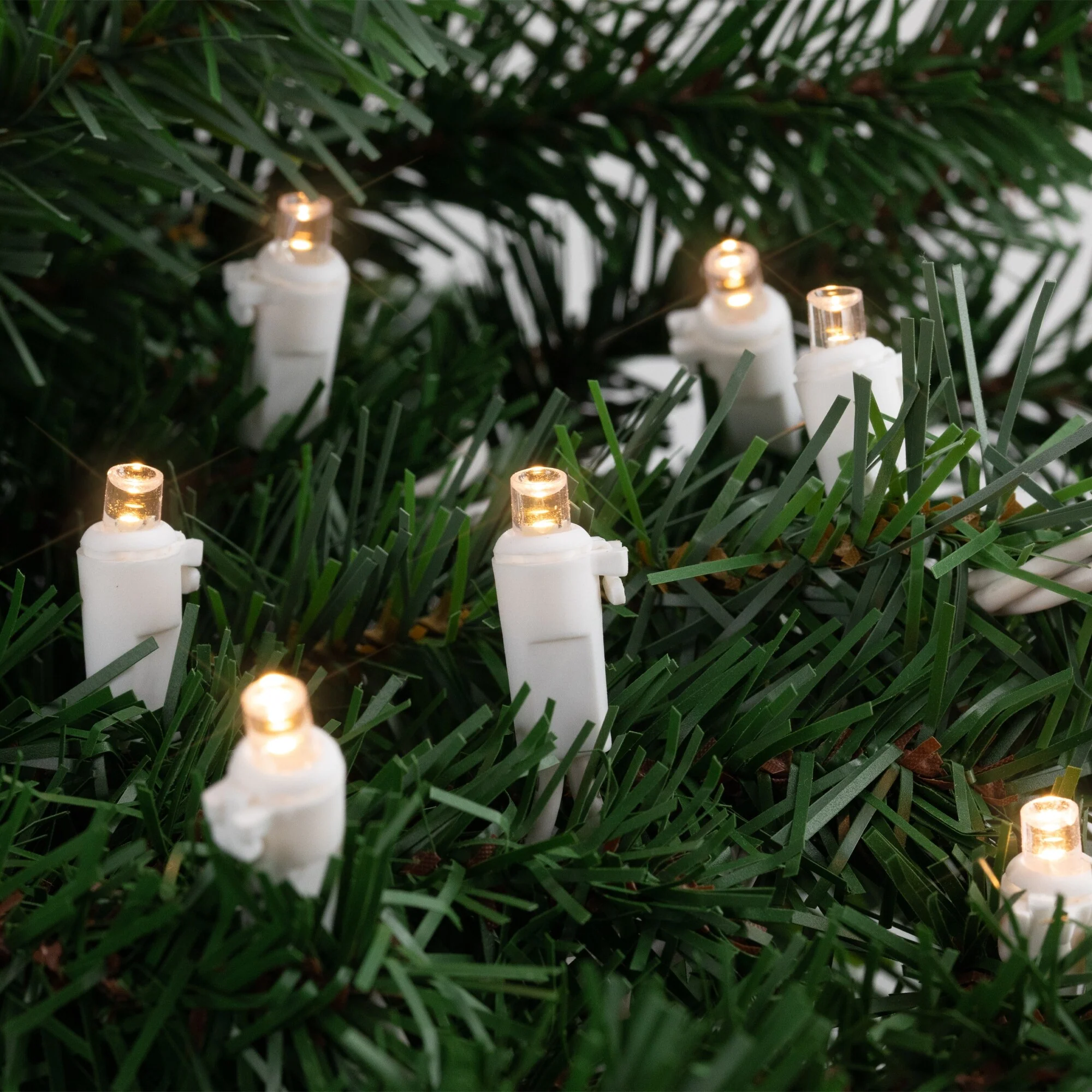 These lights feature 100 warm white LEDs that are evenly spaced along a 33-foot string, providing a welcoming glow to your space. The wide angle design of the lights ensures that they can be seen from all angles, providing maximum impact and visibility for your holiday display. The warm white LED lights emit a warm light that is perfect for creating a winter wonderland atmosphere in your home or yard. These lights are energy efficient, using only a fraction of the power of traditional incandescent bulbs. They're also designed to last longer, so you can enjoy them for many holiday seasons to come. These lights are UL rated for both indoor and outdoor use, making them versatile and perfect for use on trees, bushes, hedges, fences, and more. These lights provide a classic and elegant look that is sure to set the tone for your holiday festivities.
