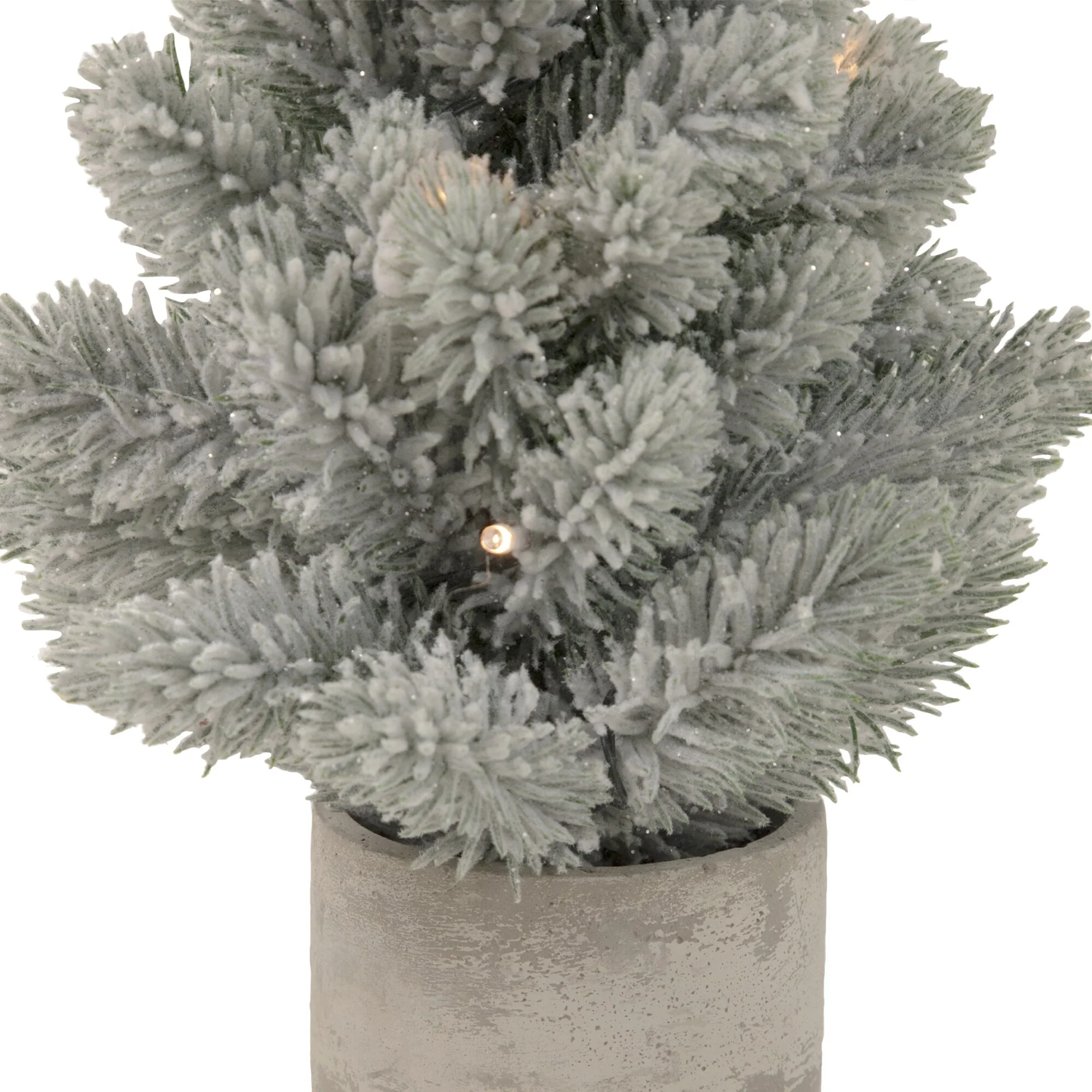 16" LED Lighted Mini Frosted Pine Christmas Tree in Cement Base