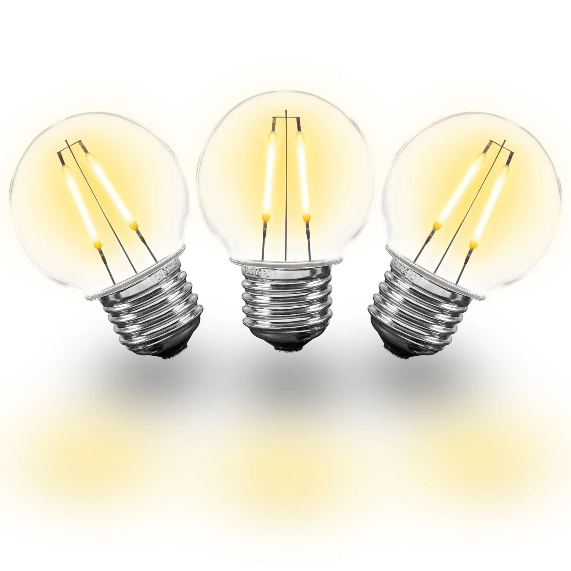 25 Pack LED G50 Plastic 2 Filament Outdoor Globe Replacement Bulbs E26 Base Warm White