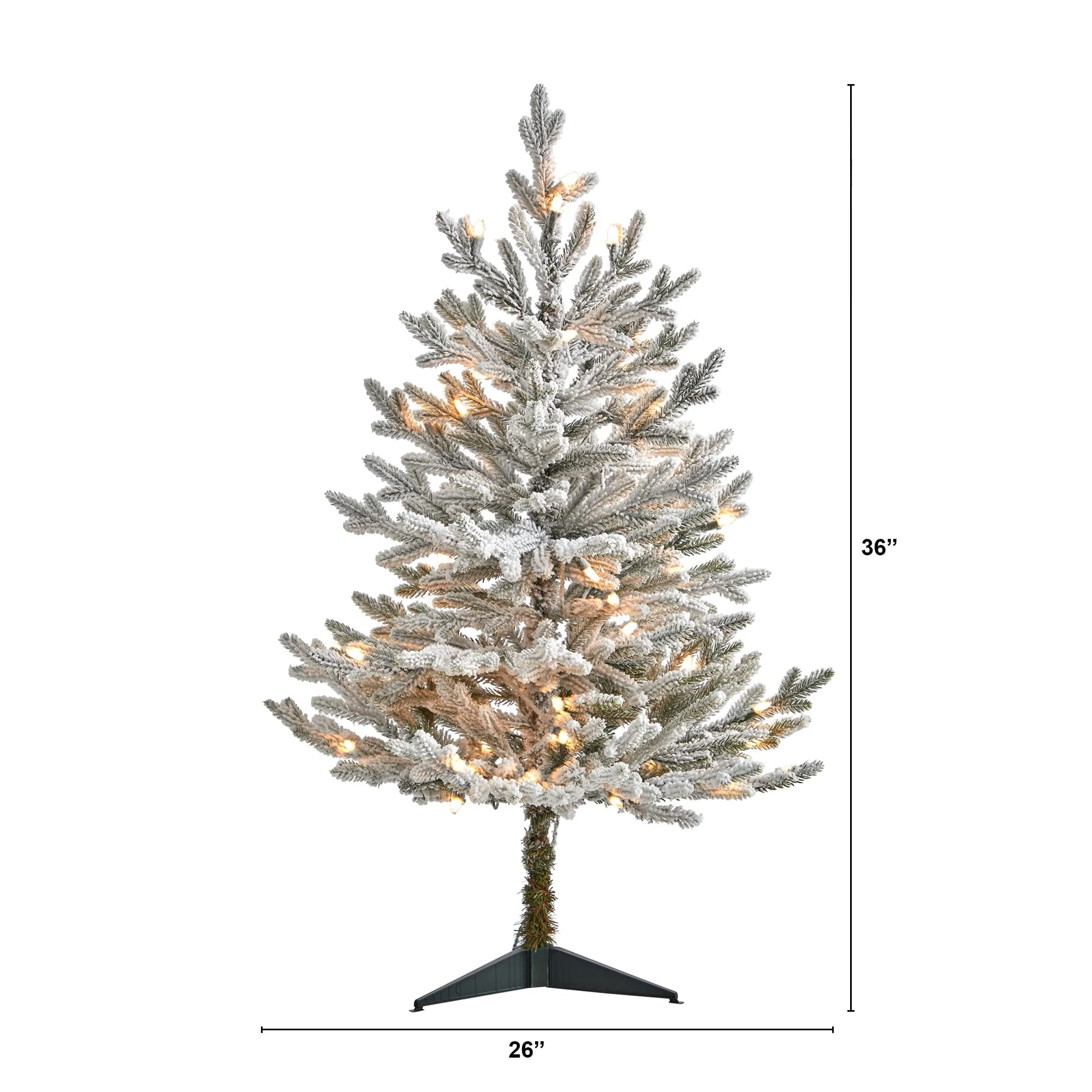 Experience the enchantment of a snow dusted holiday even in the smallest spaces with this flocked Fraser fir artificial Christmas tree. Its captivating design features a classic silhouette adorned with 481 flexible, snow flocked tips, perfect for showcasing your cherished ornaments. With its LED lights and a sturdy stand for easy setup, this delightful, compact tree will fill your home with festive joy and wintry charm.