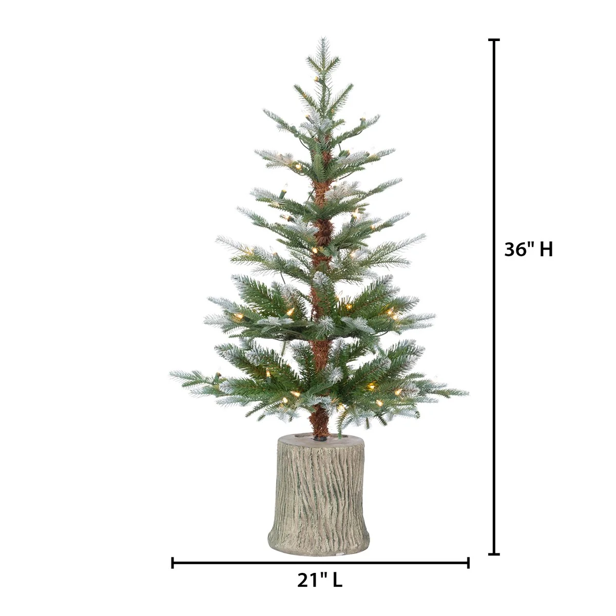 Add a touch of winter wonder to your holiday decor with the 3 Foot Pre-Lit Clear UL Potted Natural Cut Lightly Frosted Pine. This charming tree features 50 clear lights and 302 tips, creating a lush and realistic appearance. The lightly frosted branches add a festive, snow-kissed look, while the sturdy potted base ensures stability. Perfect for both indoor and outdoor use, this pre-lit frosted pine tree is ideal for entryways, patios, or any room in your home, bringing seasonal cheer to your festive decorations.