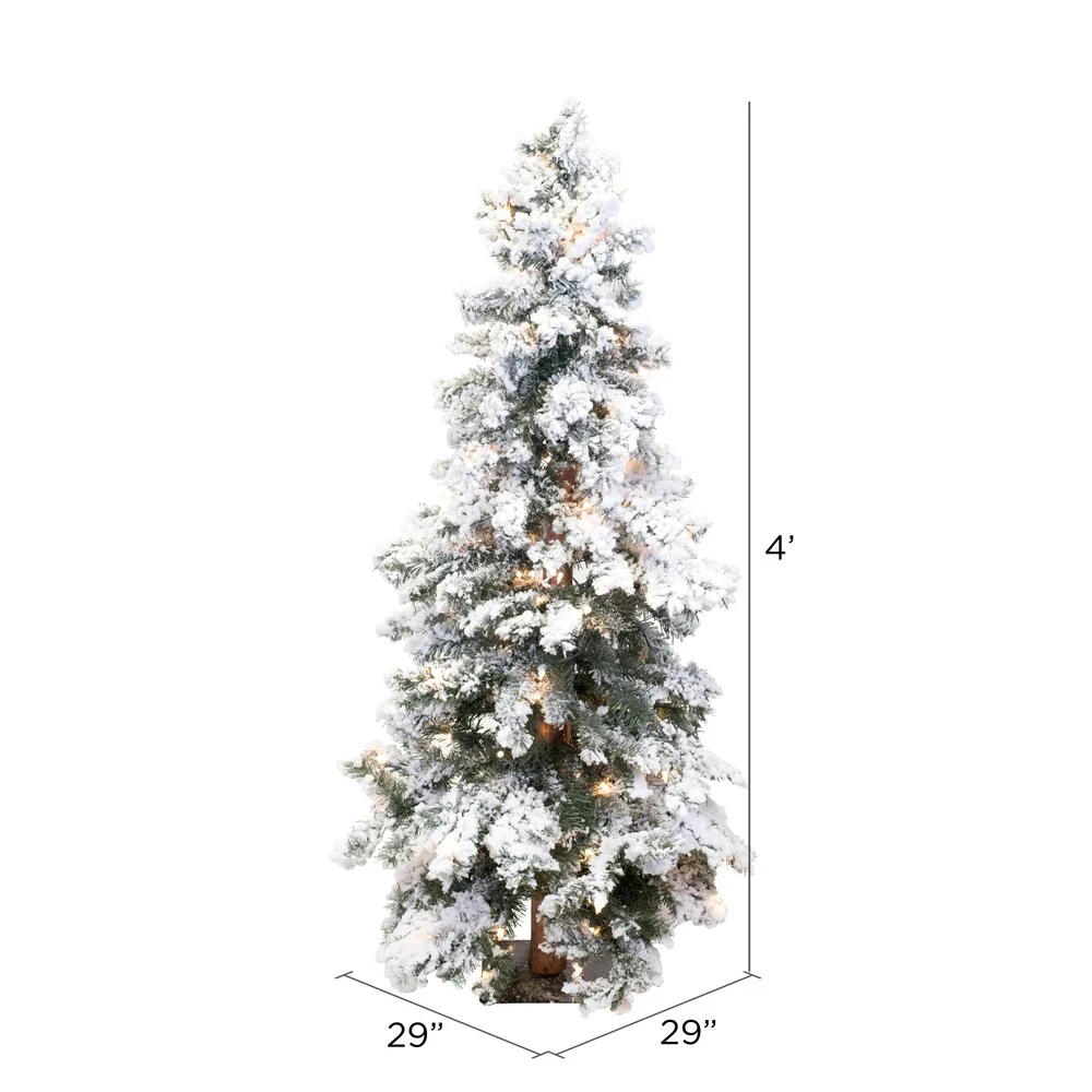 4' Flocked Spruce Dura-Lit Tree with 150 Clear Lights, 358 Tips - White