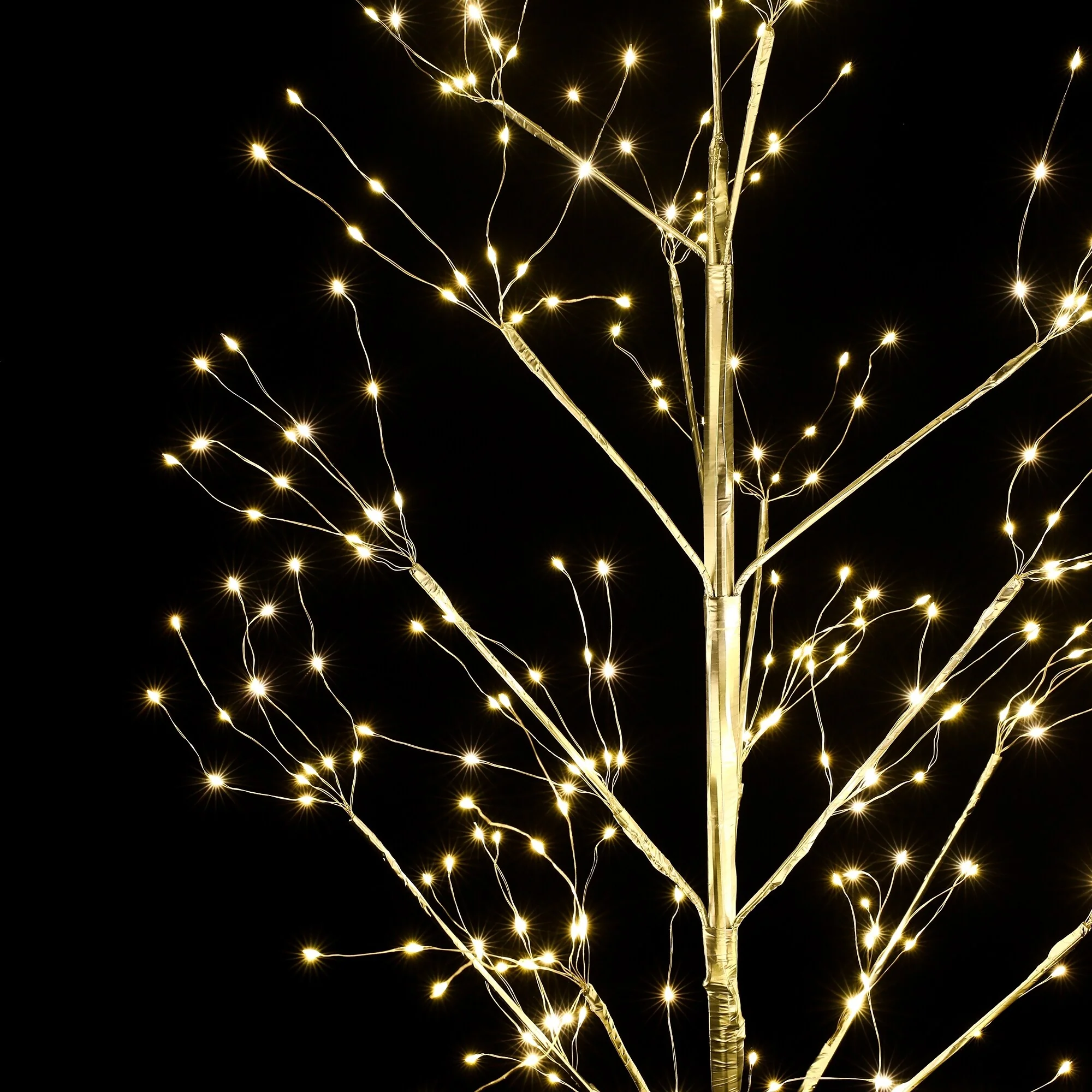 • Artificial white birch tree has 300 warm white micro LED lights (UL approved plug-in with 9.8-feet lead cord).