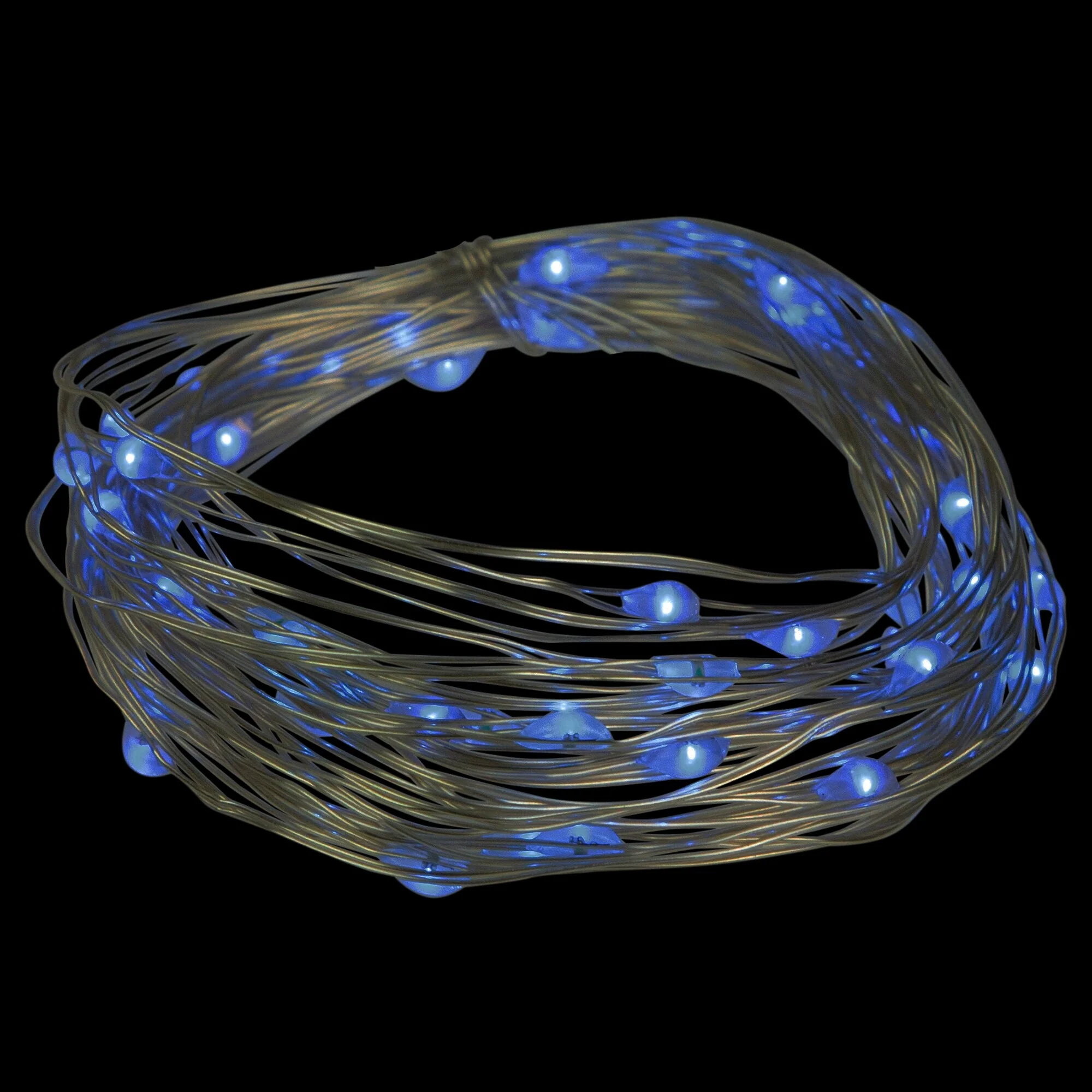 These blue micro fairy lights radiate a bright, sparkly hue, perfect for complementing any color scheme. The ultra-slim pliable wire makes these lights incredibly versatile. They can easily be stretched and shaped to accommodate your decorating needs. The battery operation means that there is no electrical outlet necessary to power the lights.