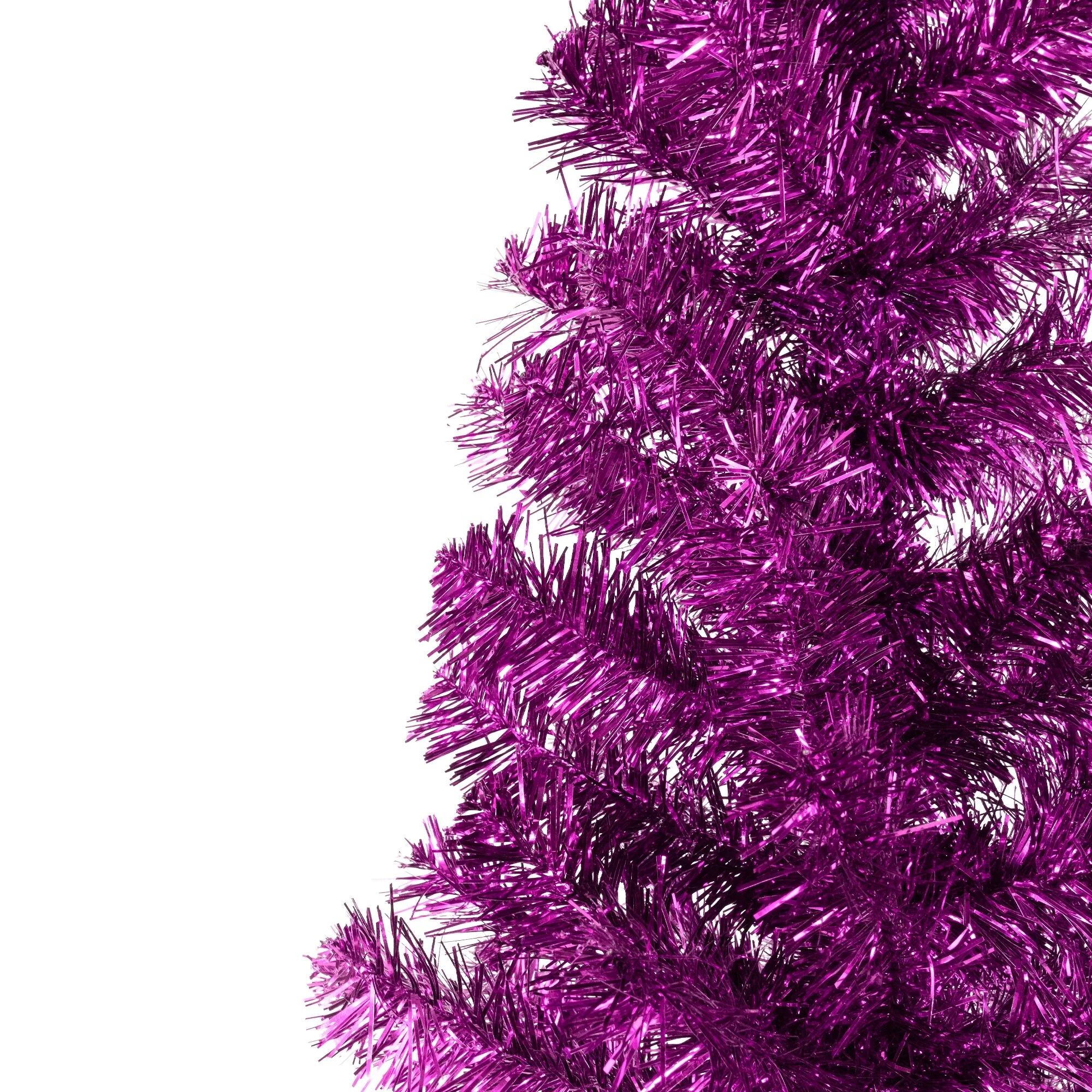 Add a splash of vibrant color to your holiday festivities with this artificial tinsel Christmas tree! This dazzling tree comes with solid purple tinsel branches that shimmer with festive charm. Unlit for convenient customization, it allows you to adorn it with your favorite lights, garlands, and ornaments. Complete with a free solid purple plastic stand, this tree is not only perfect for Christmas but also adds an eerie elegance to Halloween decorating.