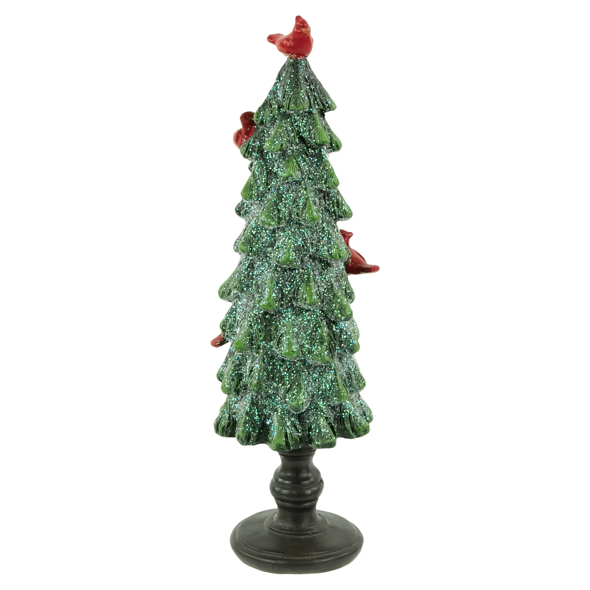 It's the most wonderful time of the year to deck the halls with this tabletop decoration! This Christmas tree is accented with red cardinals and is embellished with green glitter. This will make the perfect addition to your mantle, table, shelves, or anywhere you want to add some holiday cheer.