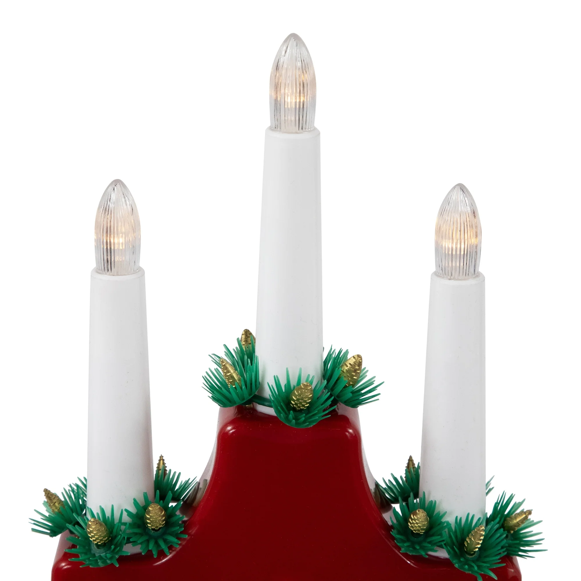 Illuminate your holiday season with this unique candle lamp bridge. Adorned with seven C6 clear lights, this battery operated lamp bridge emits a warm and inviting glow, creating a cozy ambiance in any room. Perfect as a centerpiece on your mantle, dining table, or as part of a festive display.