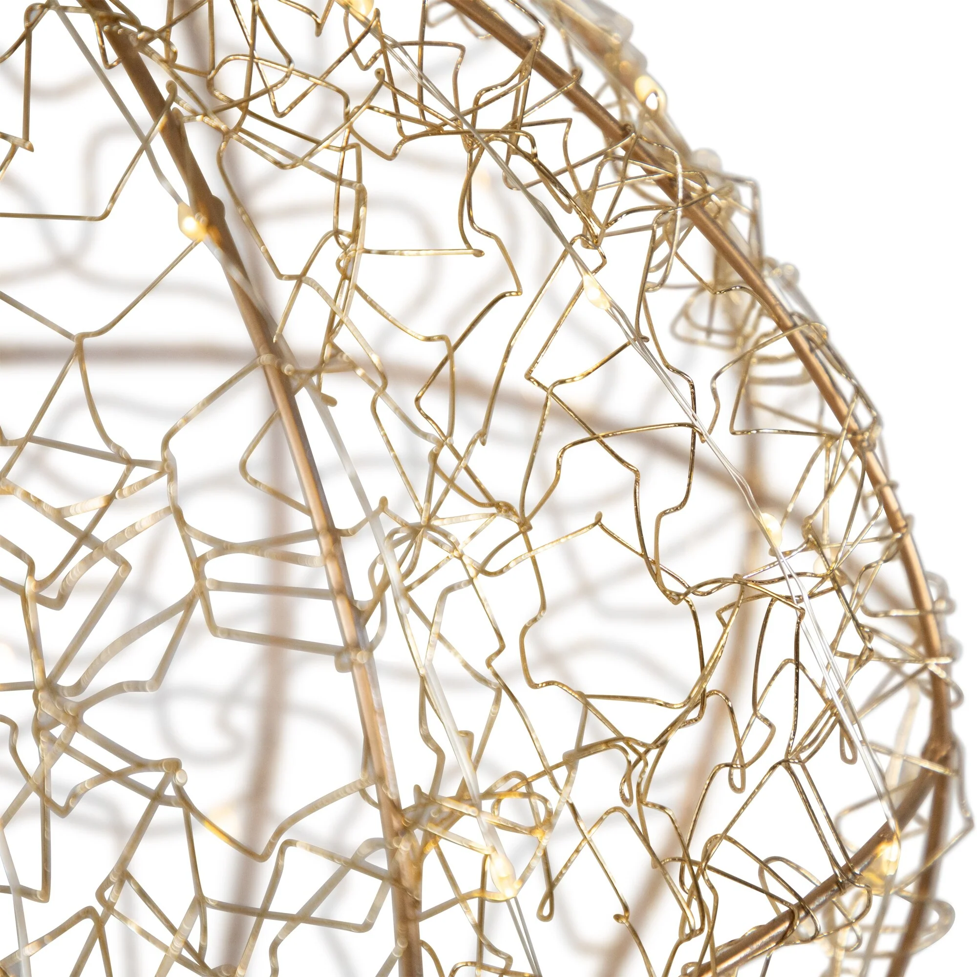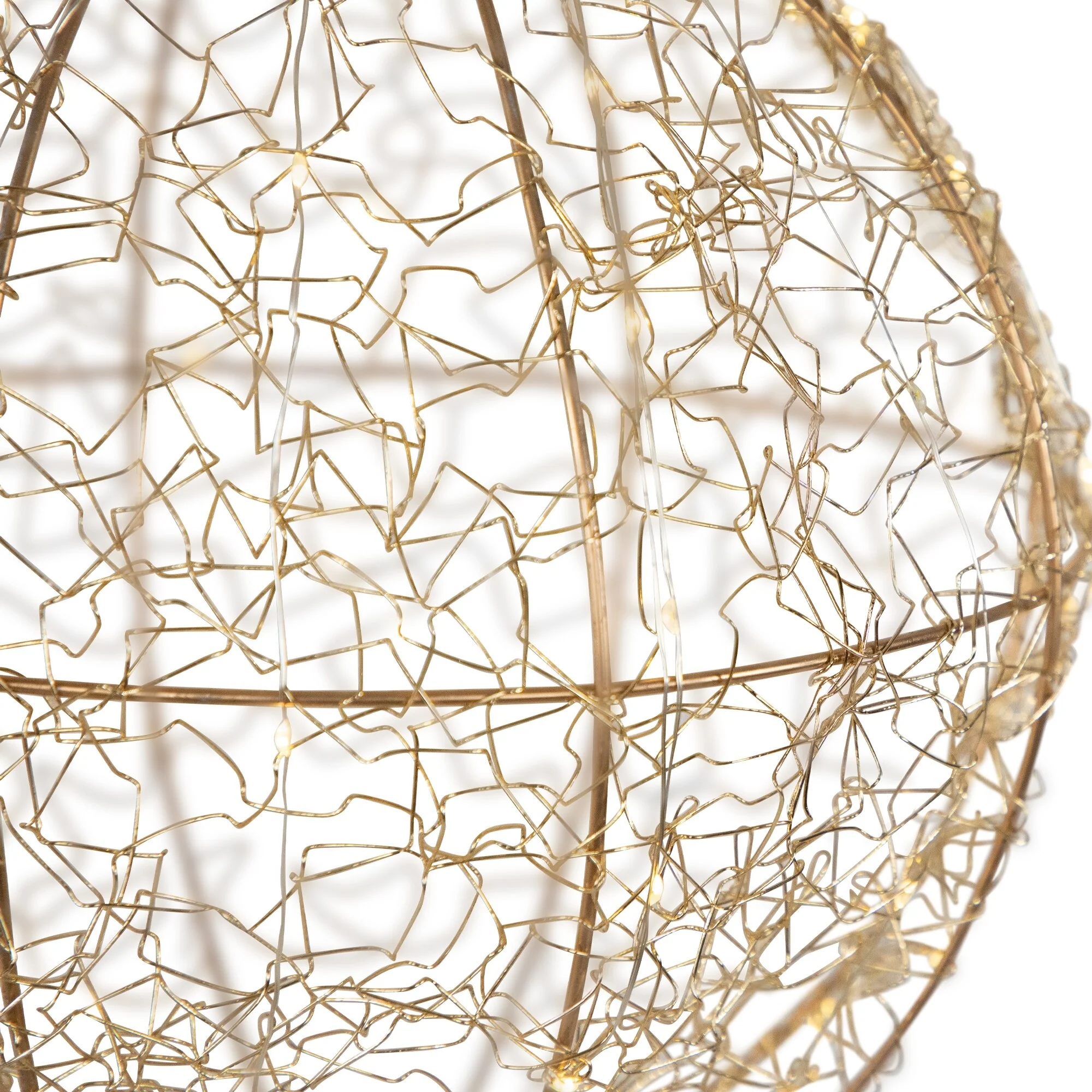 Add this golden sphere to your outdoor space for a show stopping display. A unique design featuring gold metal mesh and twinkle lights, it offers the perfect amount of holiday glow. Battery operated so it can be placed anywhere without unsightly cords.