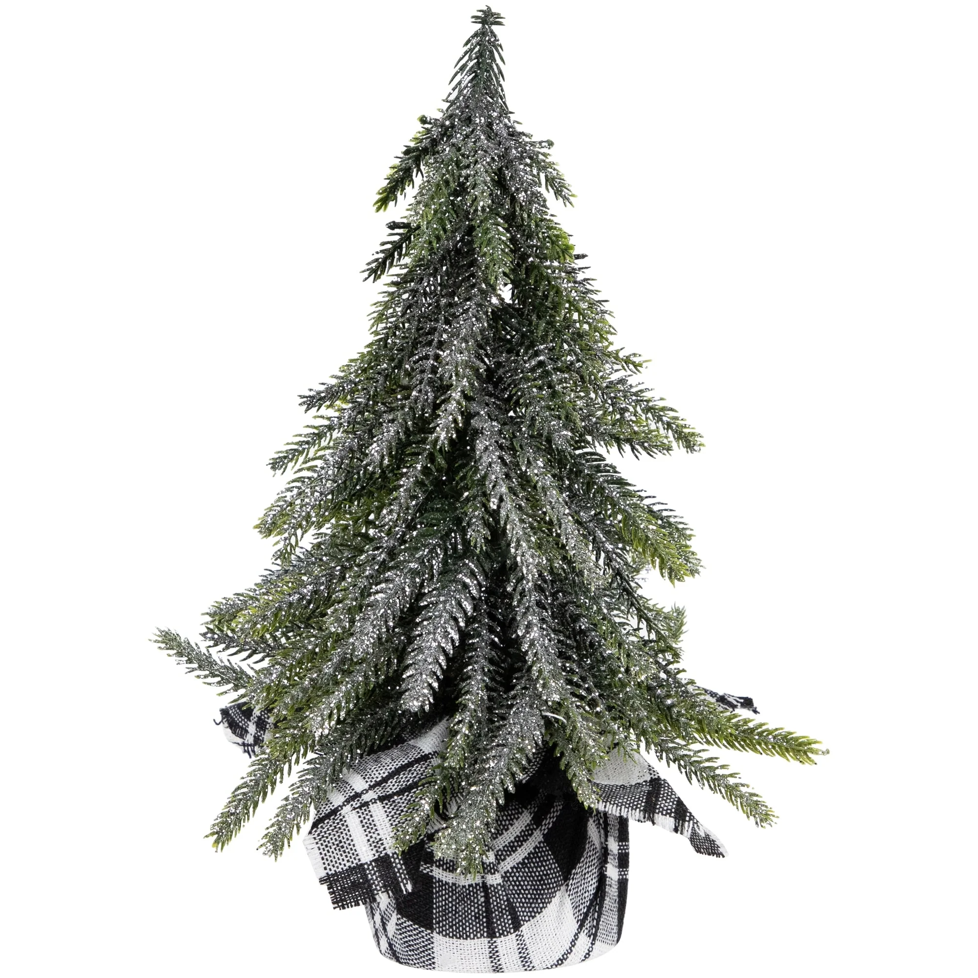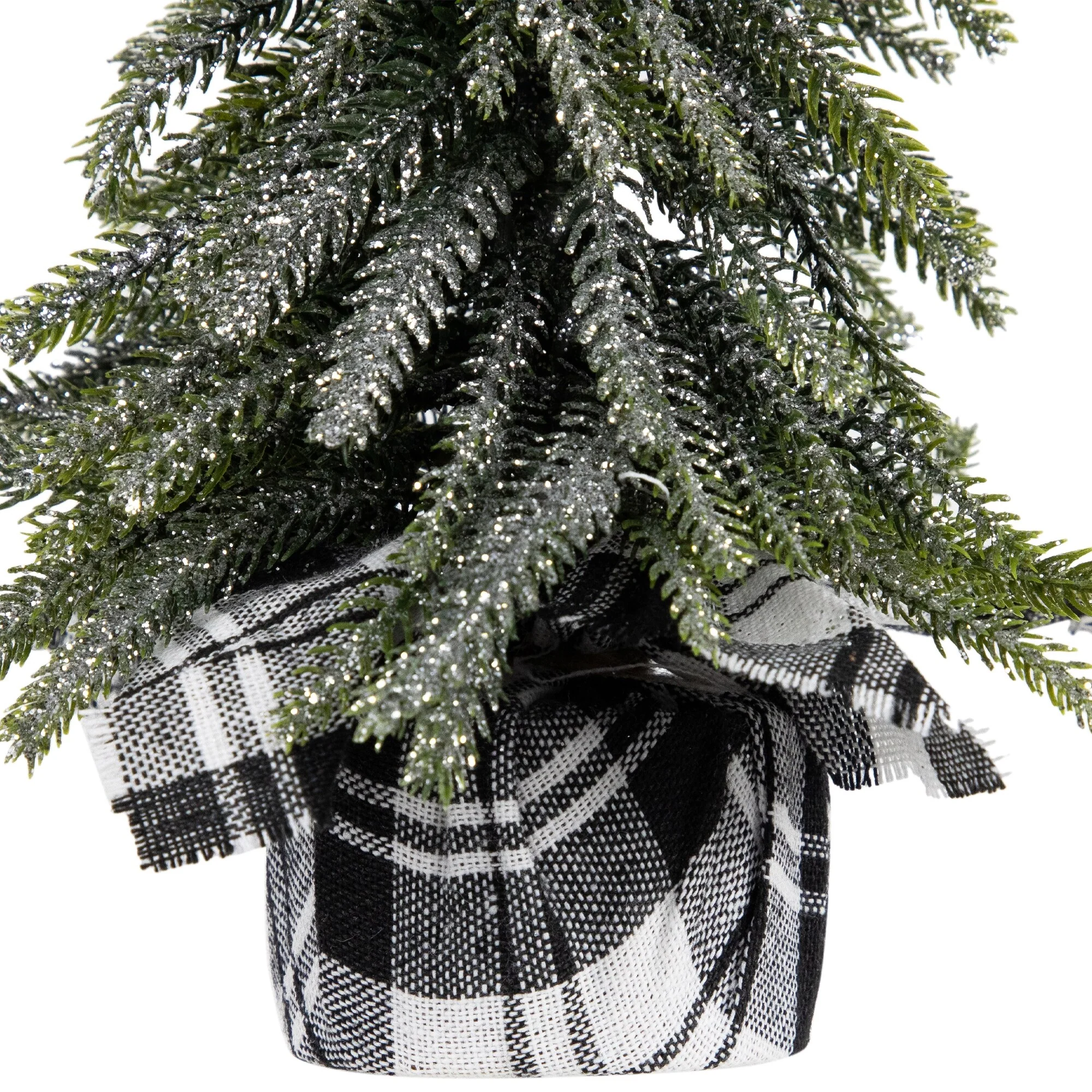 This set of 3 mini pine trees are the perfect accessory to your holiday decor. Each has downswept, molded tips for a realistic look. A light dusting of silver glitter adds an wintery look. The rustic black and white base adds a country feel. Place on mantles, table tops or use as part of your holiday table centerpiece.