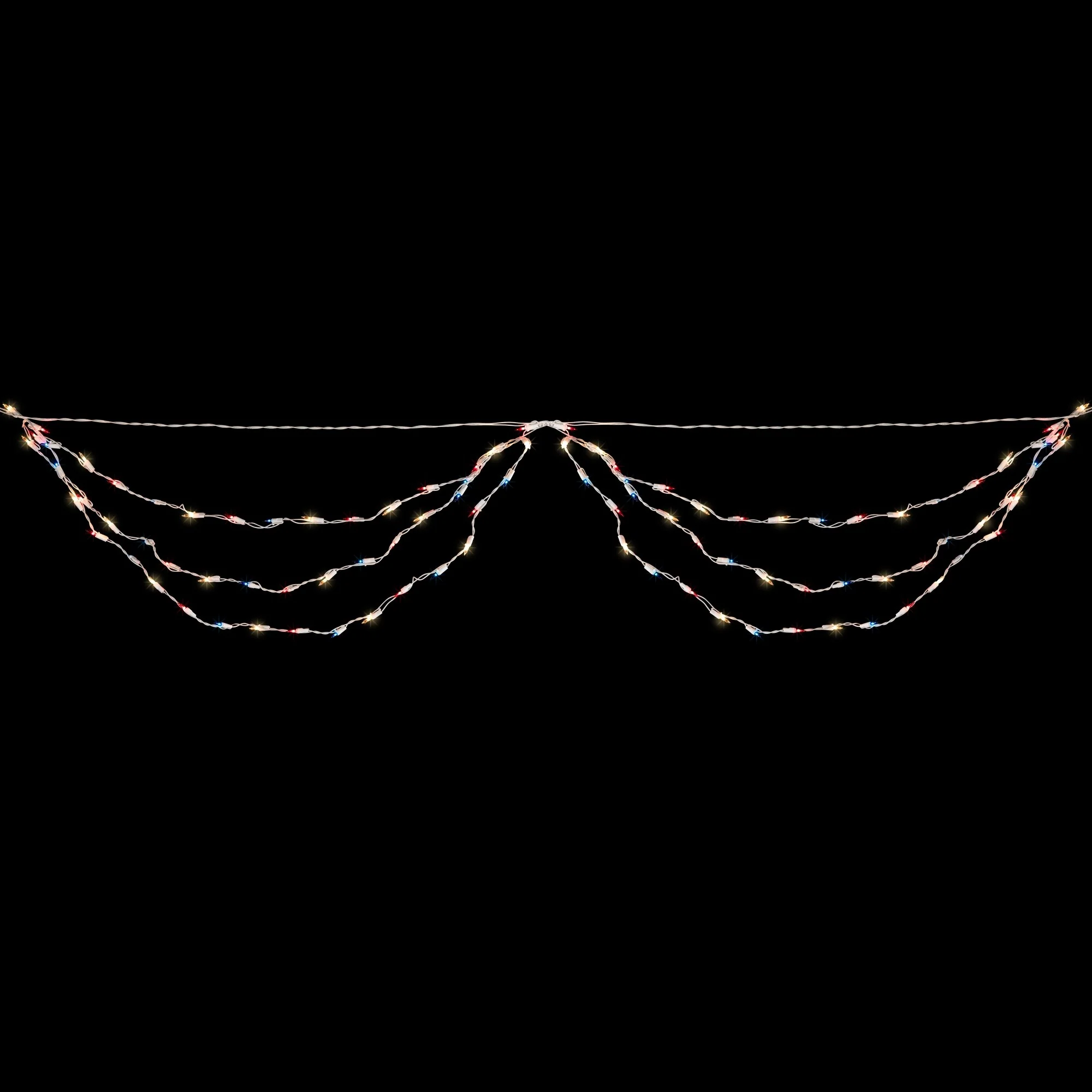 Deck the halls with patriotic flair this Fourth of July using our mini swag Patriotic lighting set in vibrant red, white, and blue. Perfect for infusing your home with festive spirit during the holiday season, these versatile lights also serve as a fitting tribute for Memorial Day, 4th of July, and Labor Day celebrations. Illuminate your space for Independence Day with the colors of patriotism and spread joyous vibes throughout your home or garden with this dazzling light set.