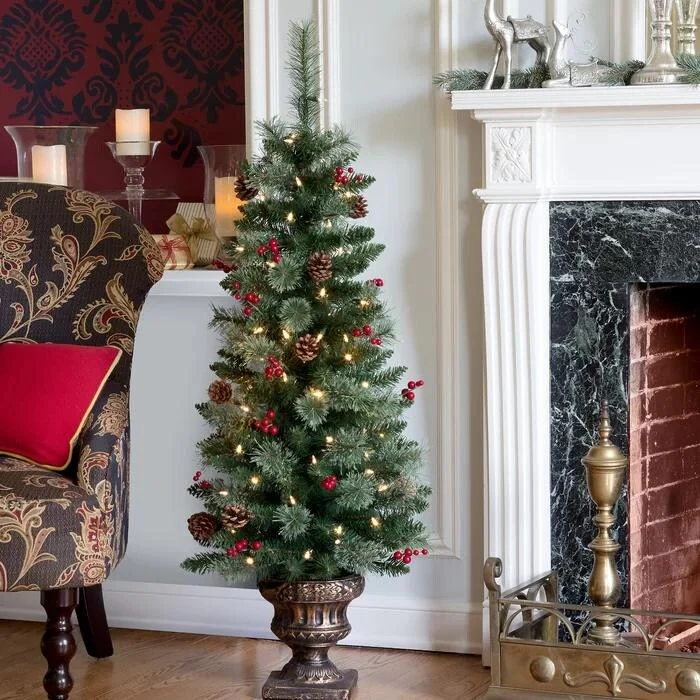 Seriously No Hassle: If you're looking for Christmas decorations, look no further than it. This holiday decor is wrapped in LEDs, red berry clusters, pine cones, and copper-colored pots, so you get the beauty without the maintenance of a fresh-cut tree. your front entrance to welcome your guests.