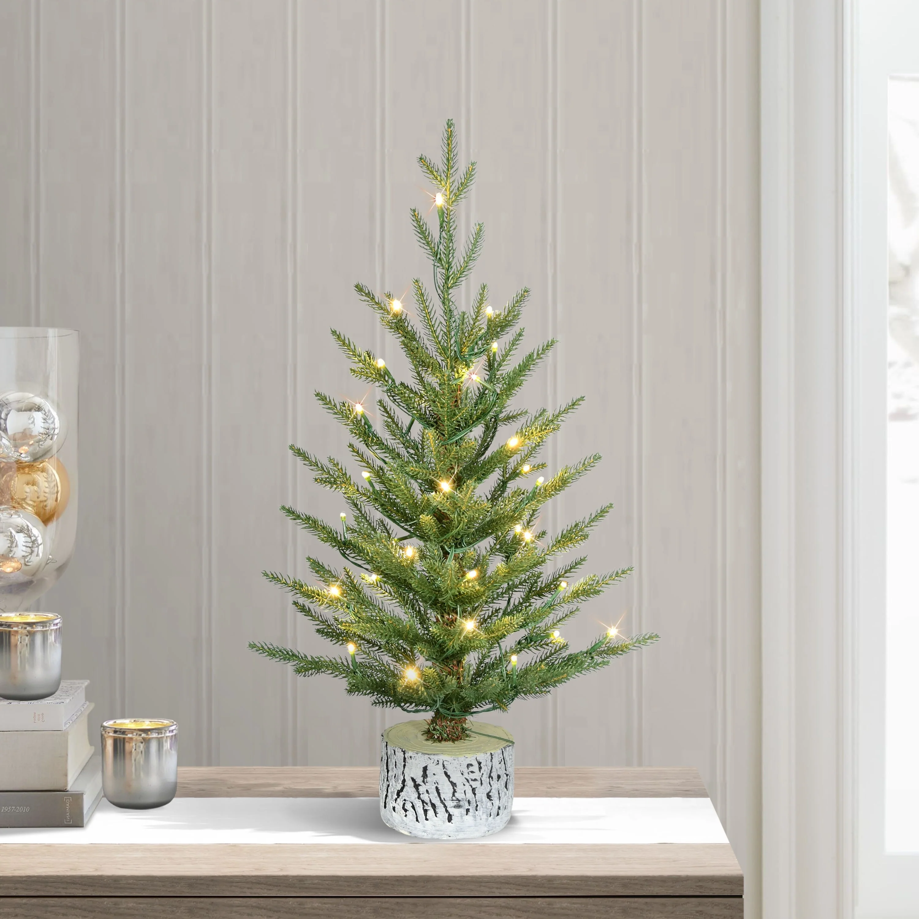 - 4.5 ft. PRE-LIT ARTIFICIAL GREEN POTTED ARCTIC FIR TREE: Features 30 Warm White LED lights that create a cozy, inviting holiday glow