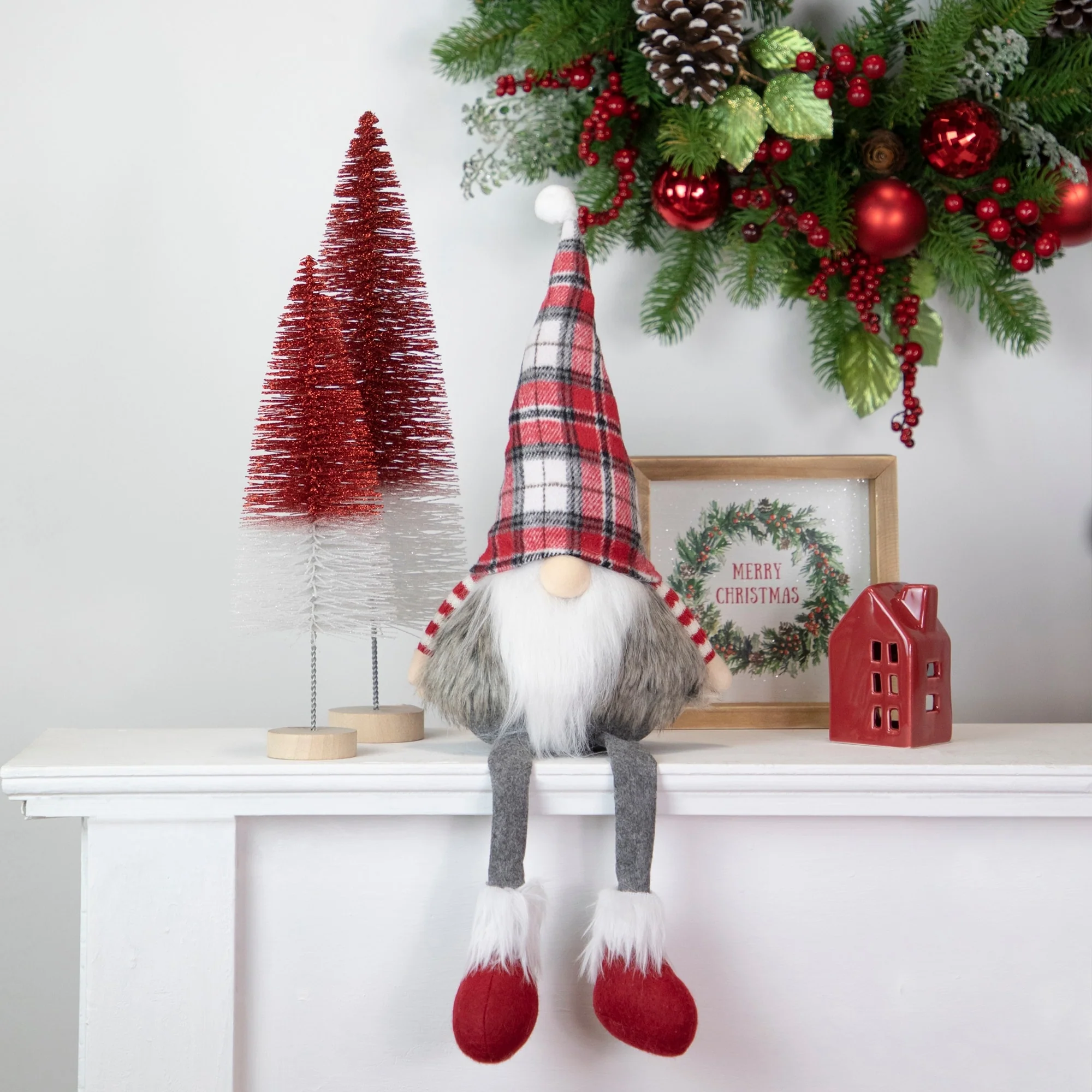 Glittered Bottlebrush Christmas Tree - 12" - Red and White