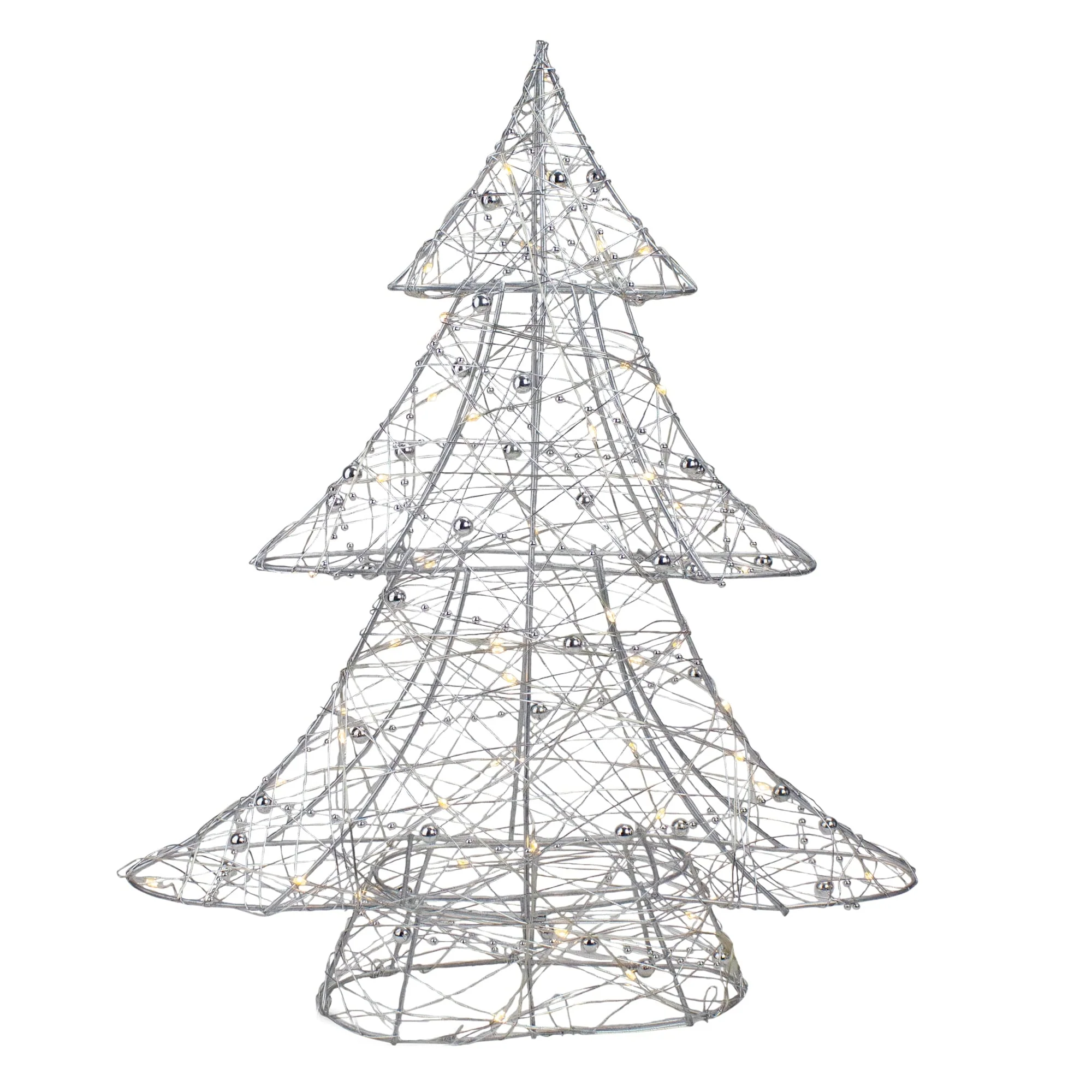 15.25" LED B/O Silver Wire Bead Christmas Tree - Warm White Lights