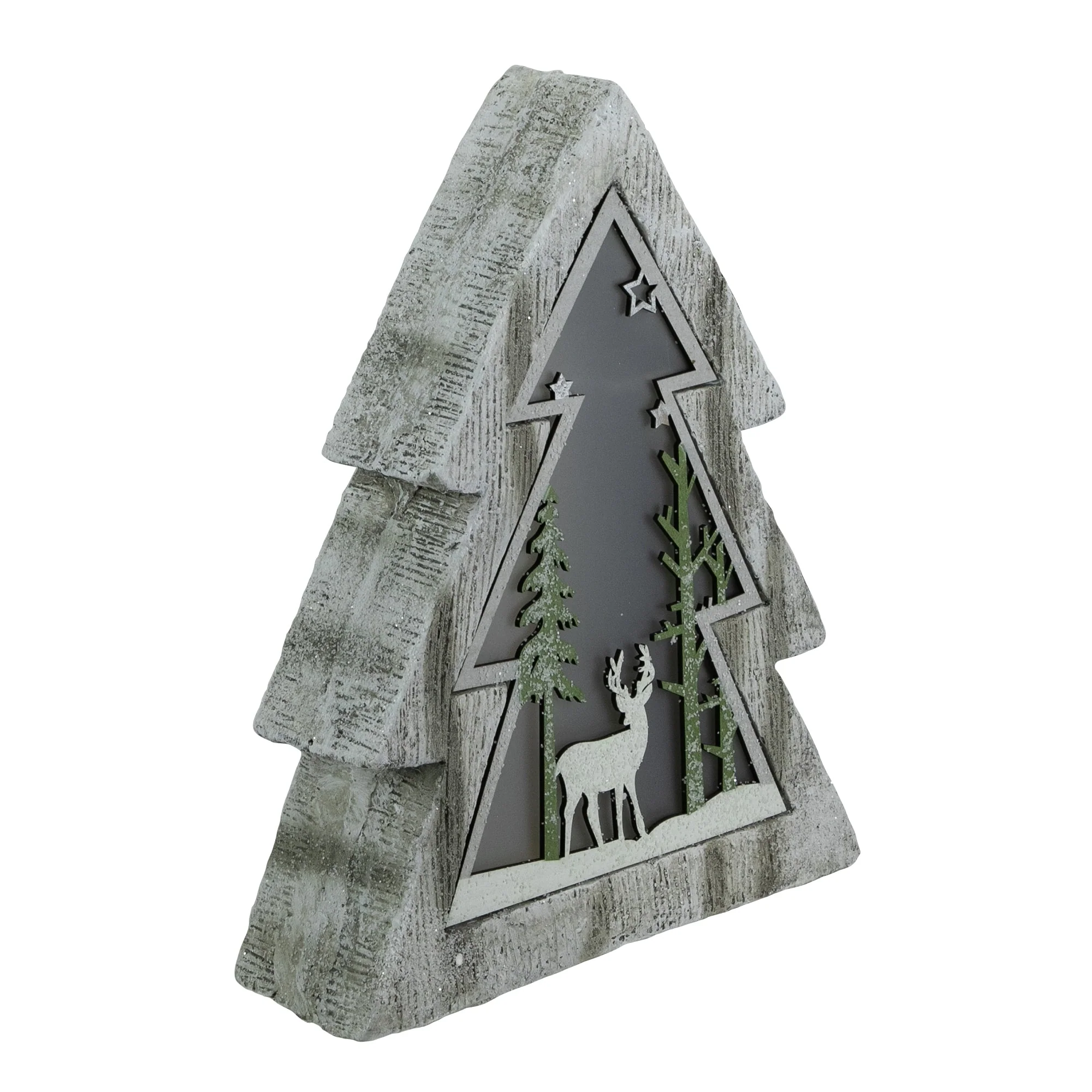 Stained Forest Tree on Washed Wood Base Christmas Decoration - 14"