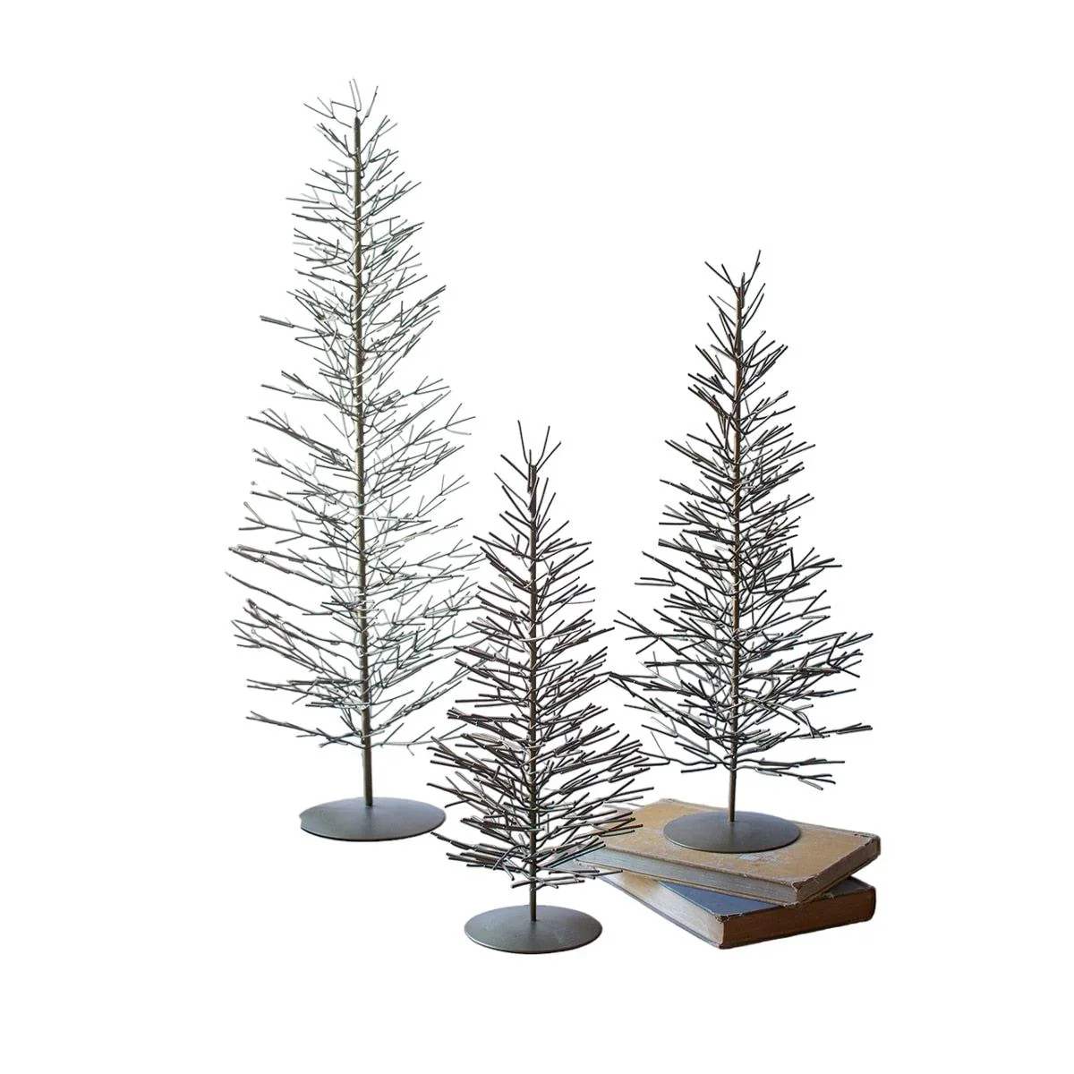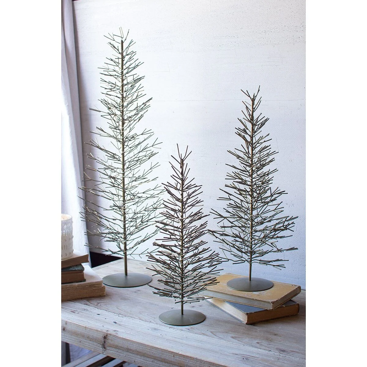 Set of 3 Green and Brown Christmas Brass Wire Trees