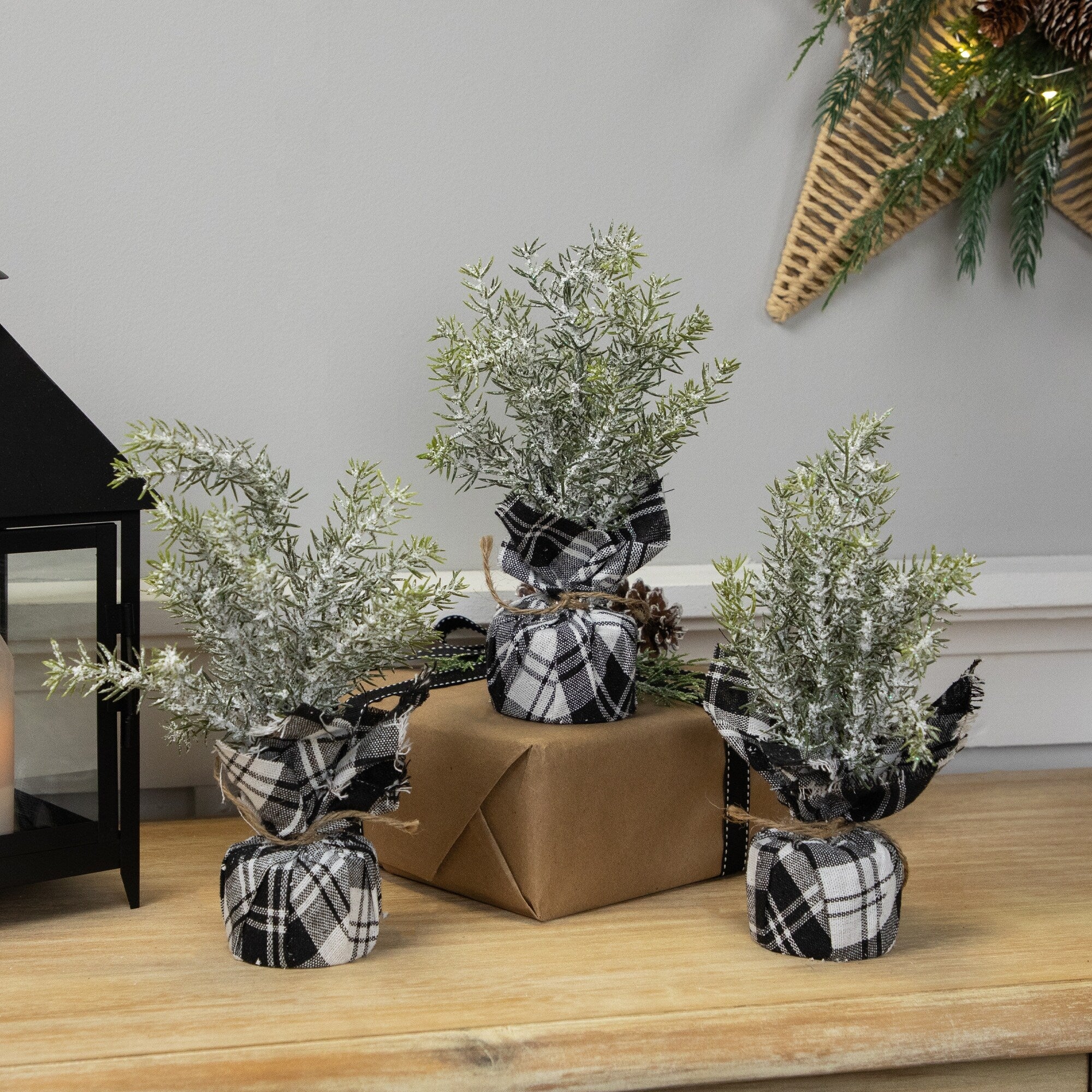 Mini Flocked Pine Artificial Christmas Trees with Burlap Base - 18" - Set of 3 - 1.5 Foot