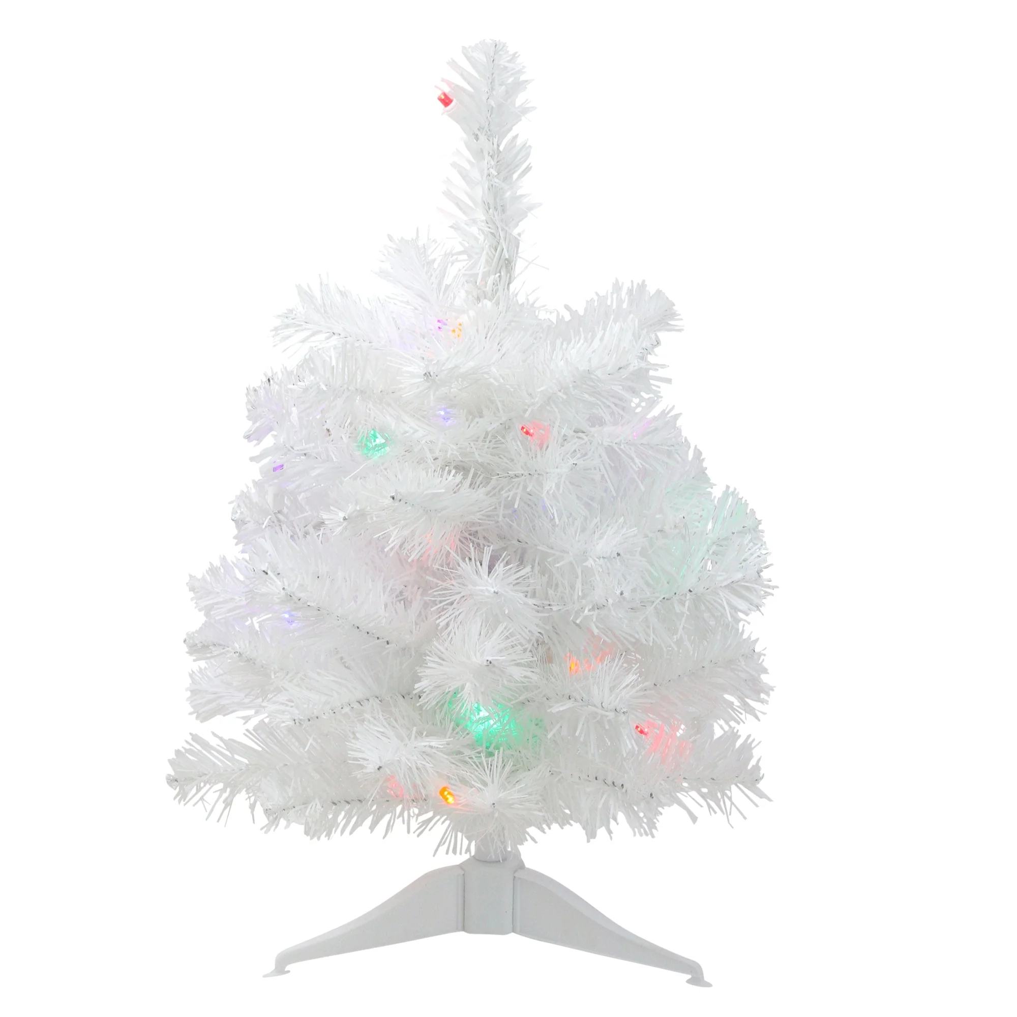 Pre-Lit Artificial Christmas Tree - 18" - White - Multicolor Lights - 1.5 Foot