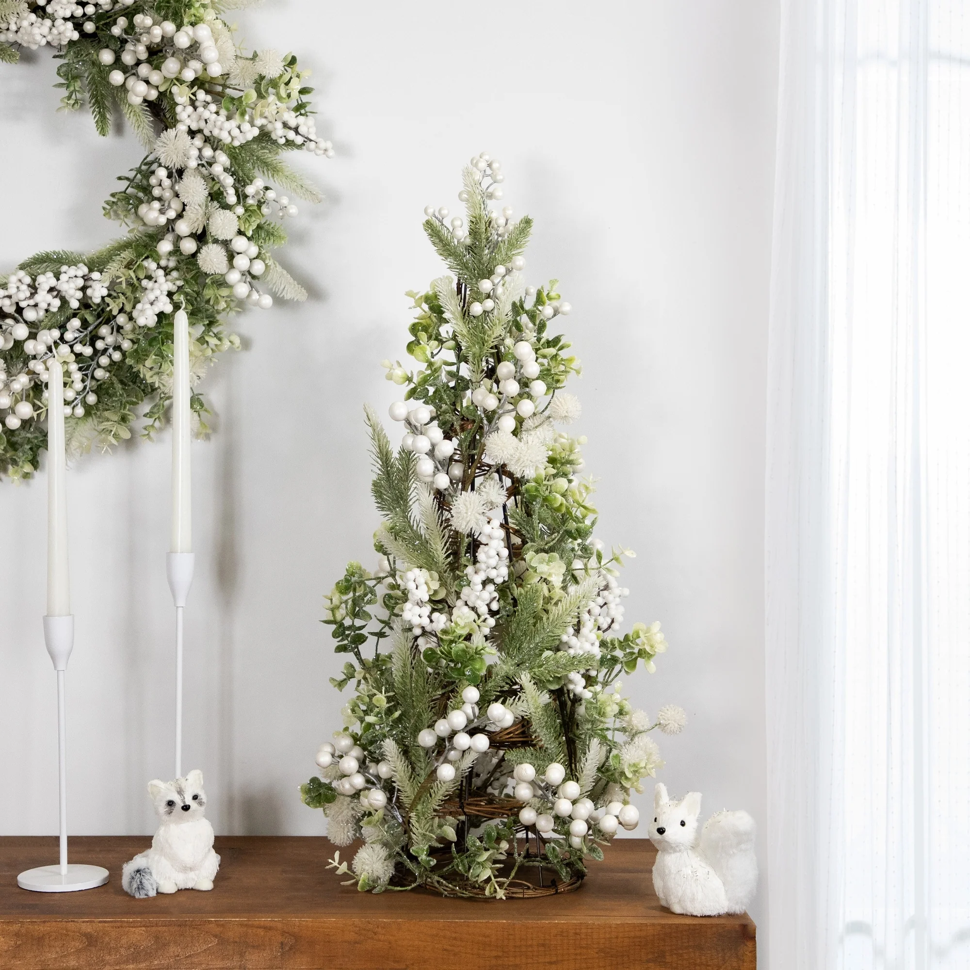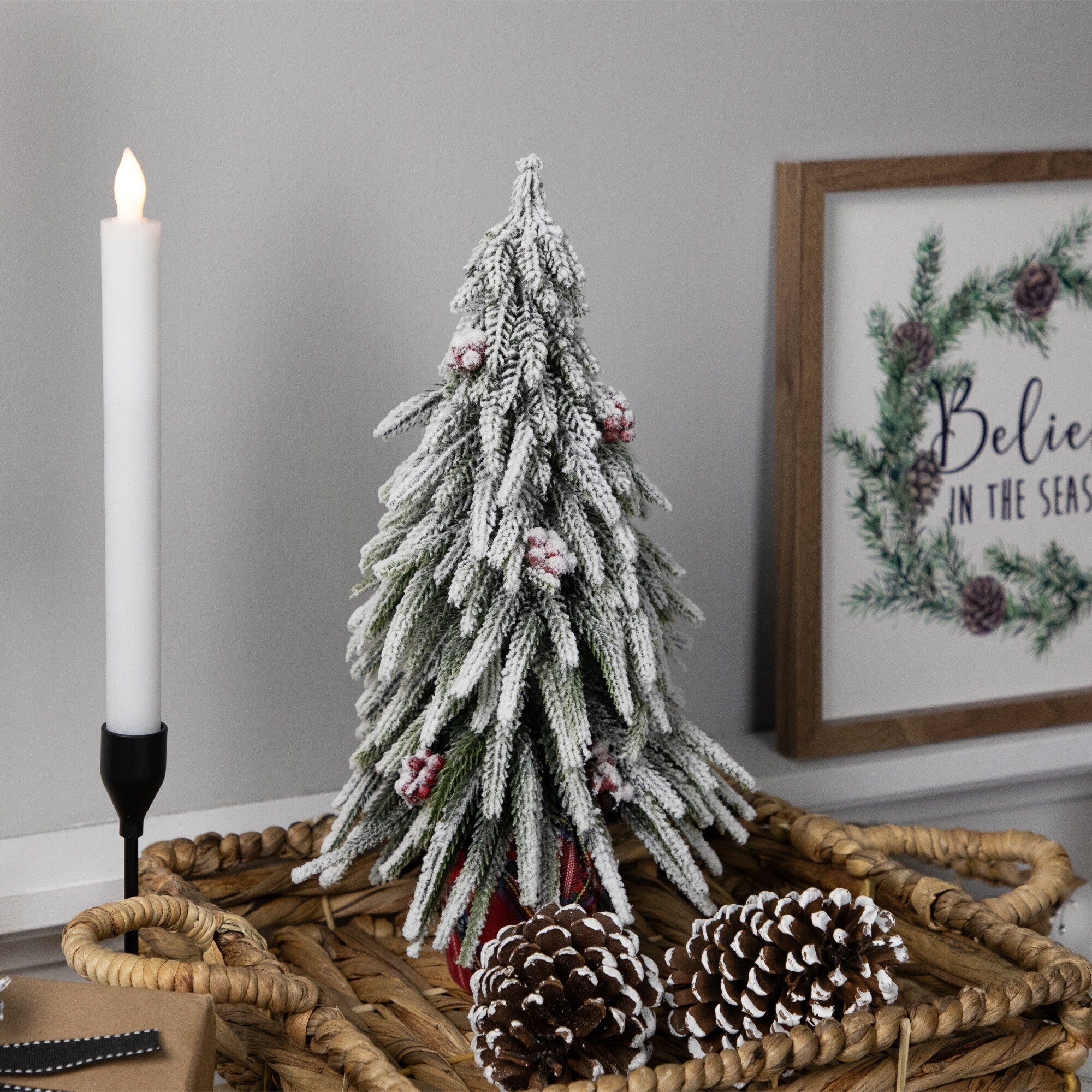 Mini Flocked Downswept Pine with Berries Artificial Christmas Tree - Unlit - 14" - Tabletop
