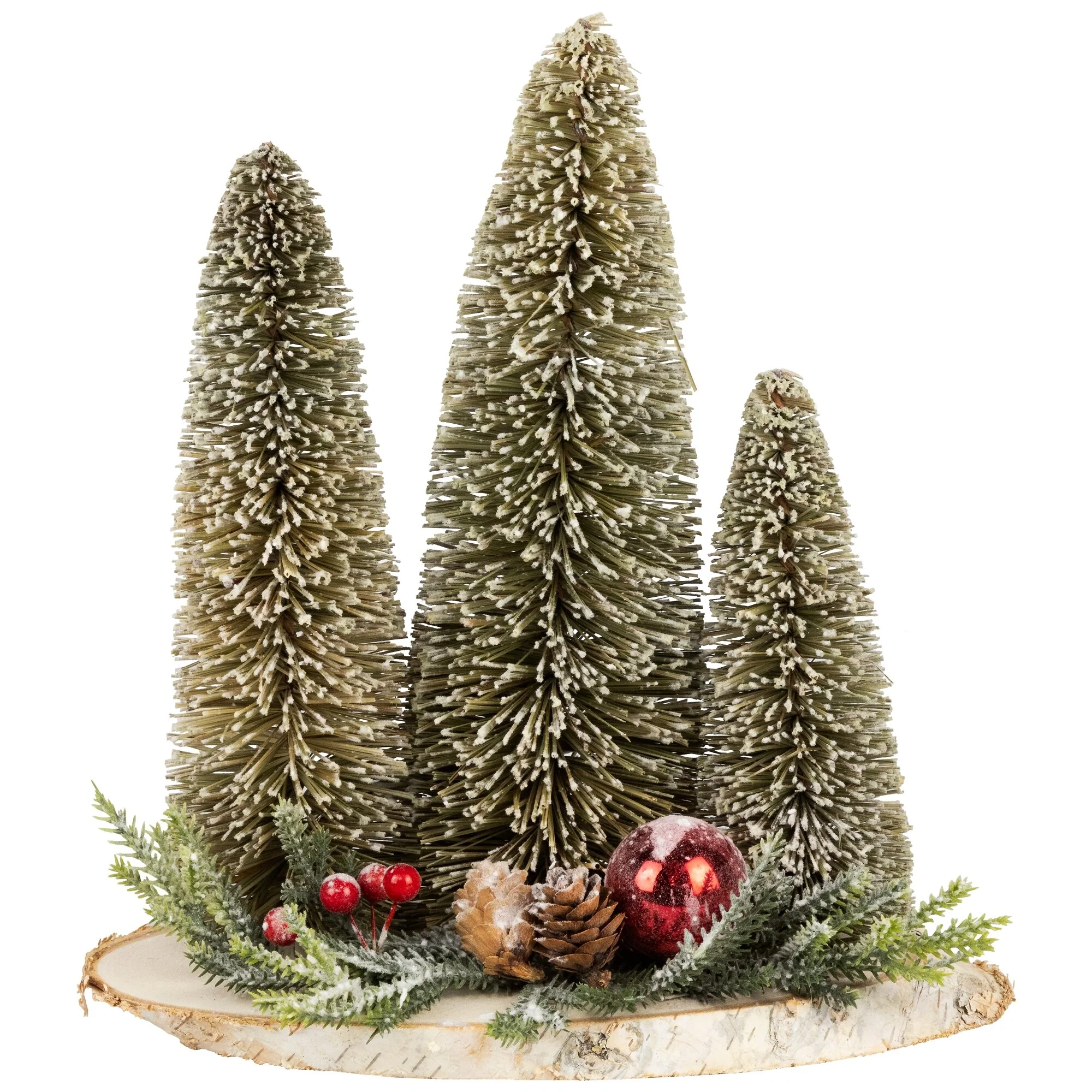 Frosted Bottle Brush Tree Trio Christmas Decoration - 10.25"