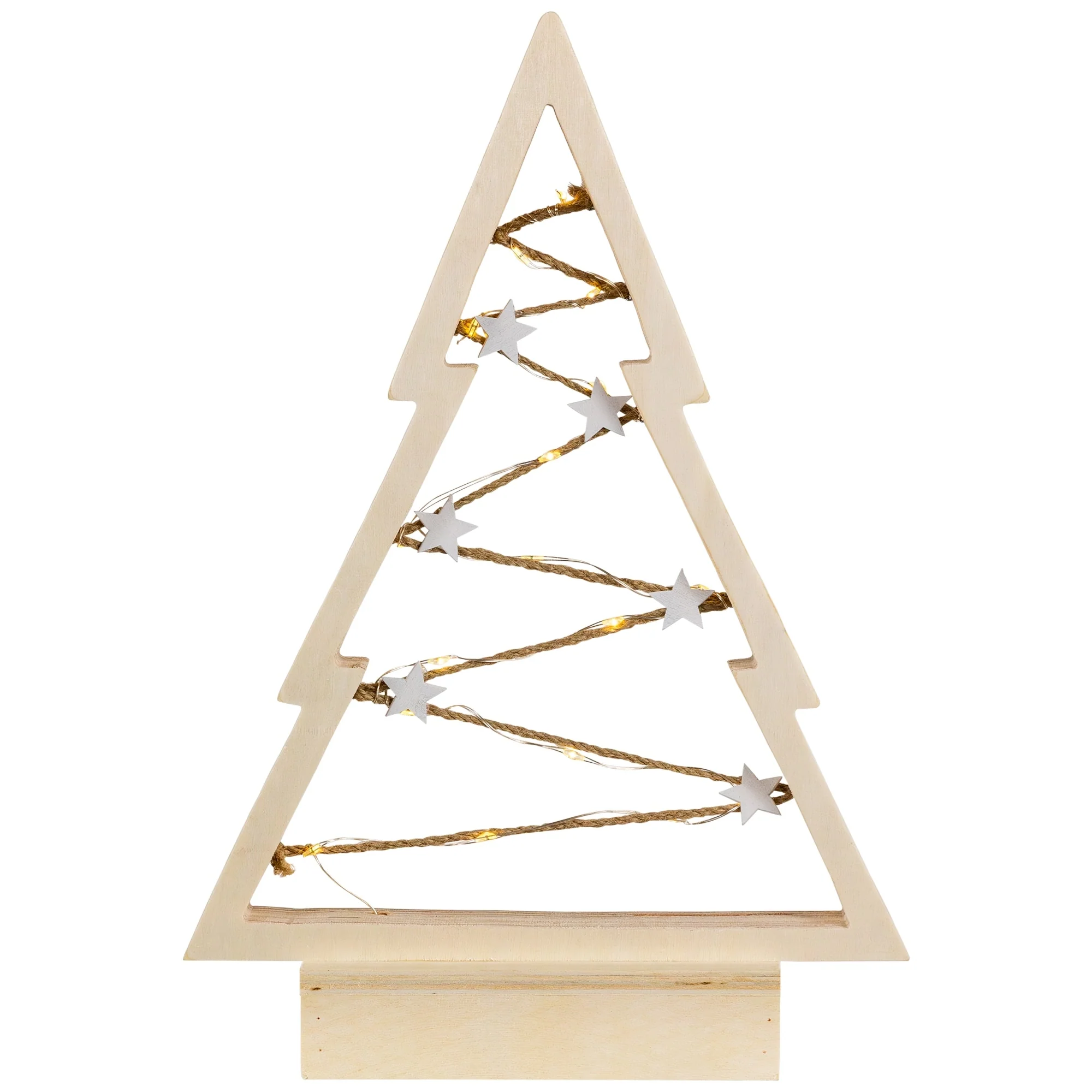 Lighted Wooden Christmas Tree with Stars Decoration - 11"