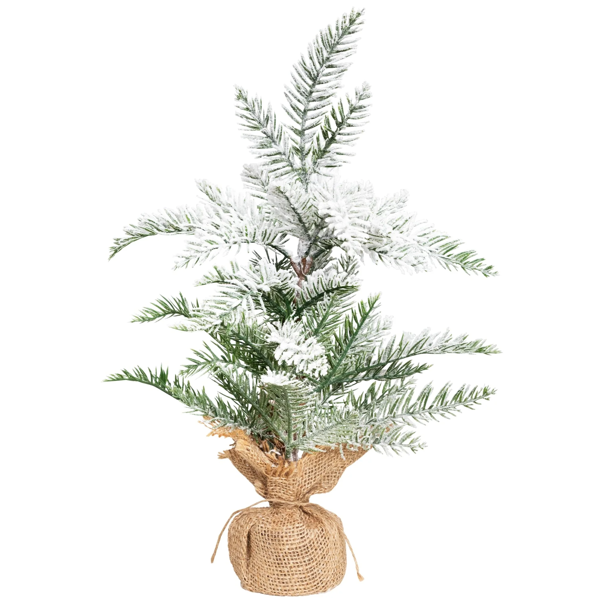 Heavily Flocked Pine Christmas Tree in Natural Jute Base - 27.5" - 2.5 Foot