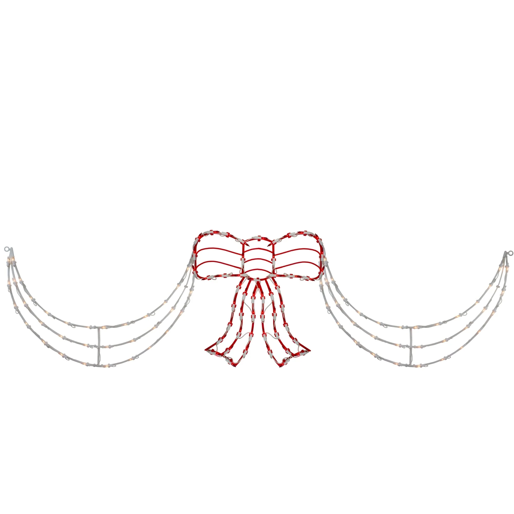 3-Piece Lighted Red and White Bow and Swag Christmas Decoration