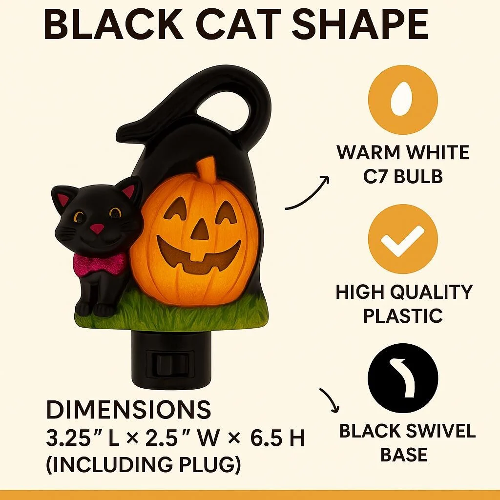 Novelty Lights LED Pumpkin Cat Halloween Night Light with Swivel Plug - PUMPKIN CAT