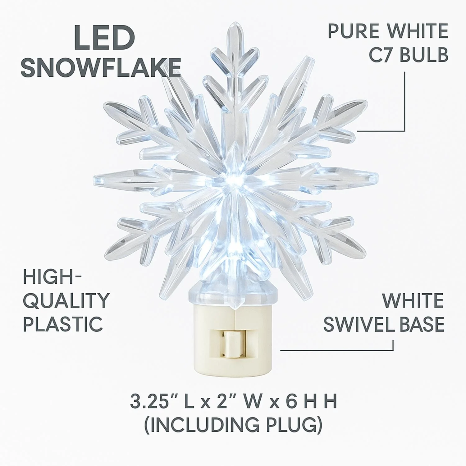 Novelty Lights LED Snowflake Christmas Night Light with Swivel Plug
