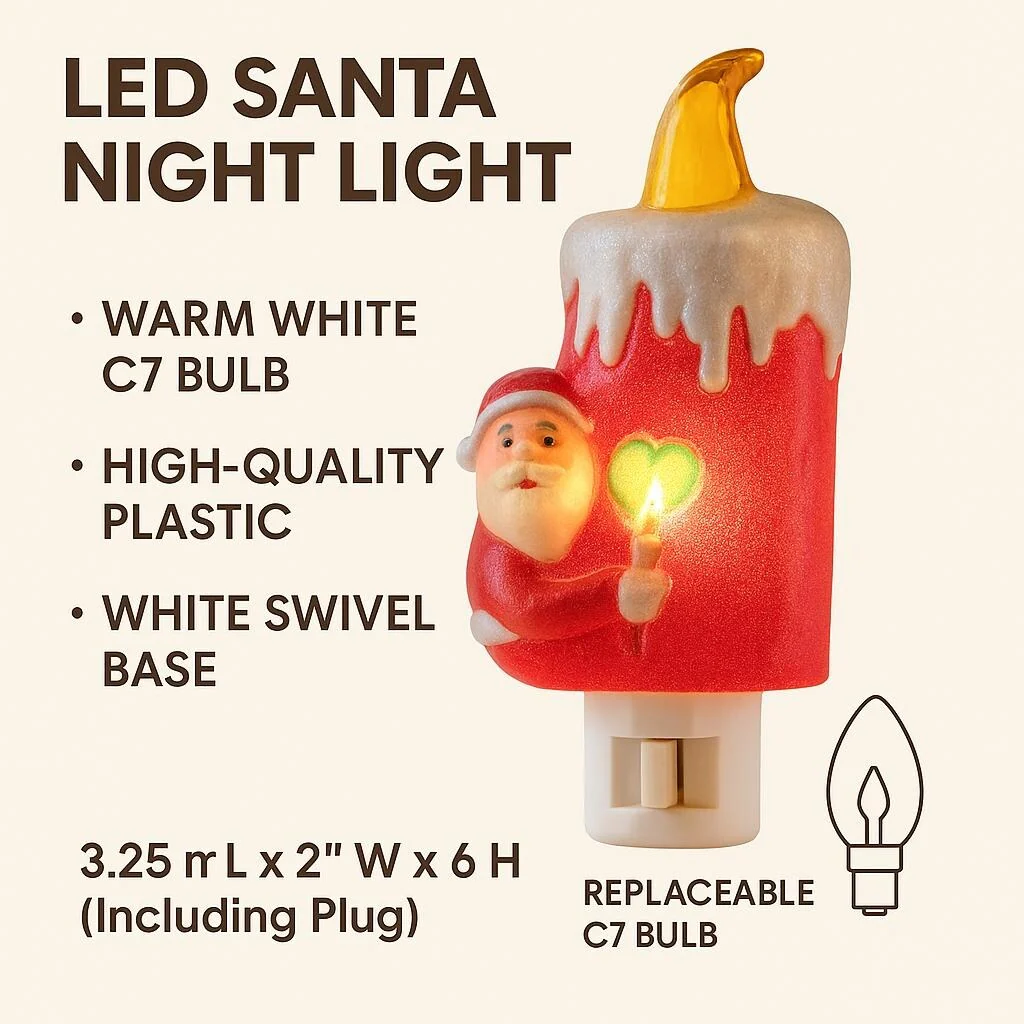 Novelty Lights LED Santa Claus Candle Christmas Night Light with Swivel Plug - SANTA CLAUS CANDLE