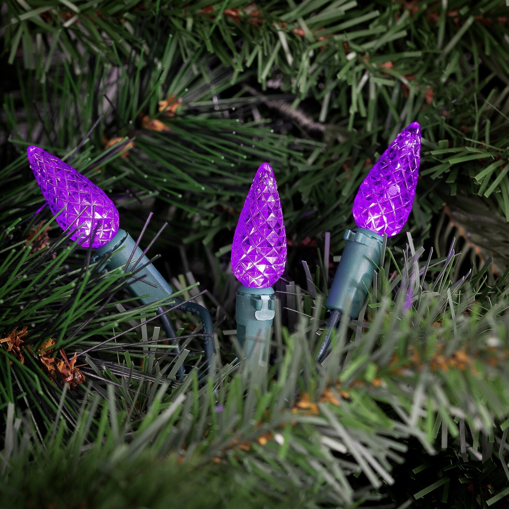 70-Count Purple LED Faceted C6 Christmas Lights Set, 23 ft Green Wire