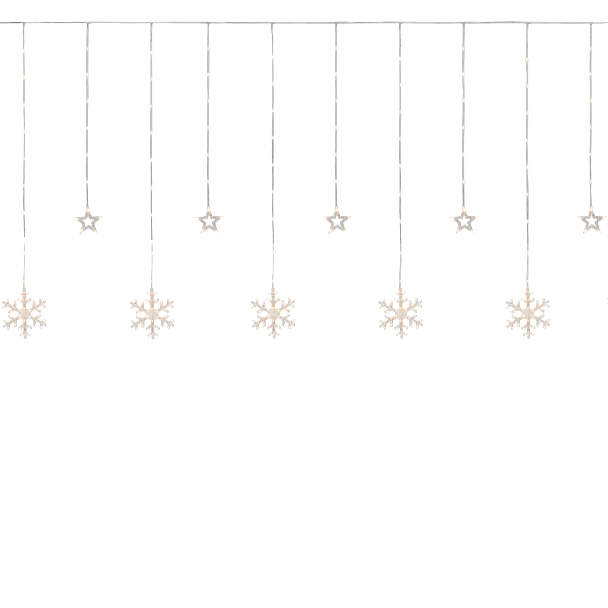 250 Clear LED Star Snowflake Window Curtain Lights 15.75ft Clear Wire