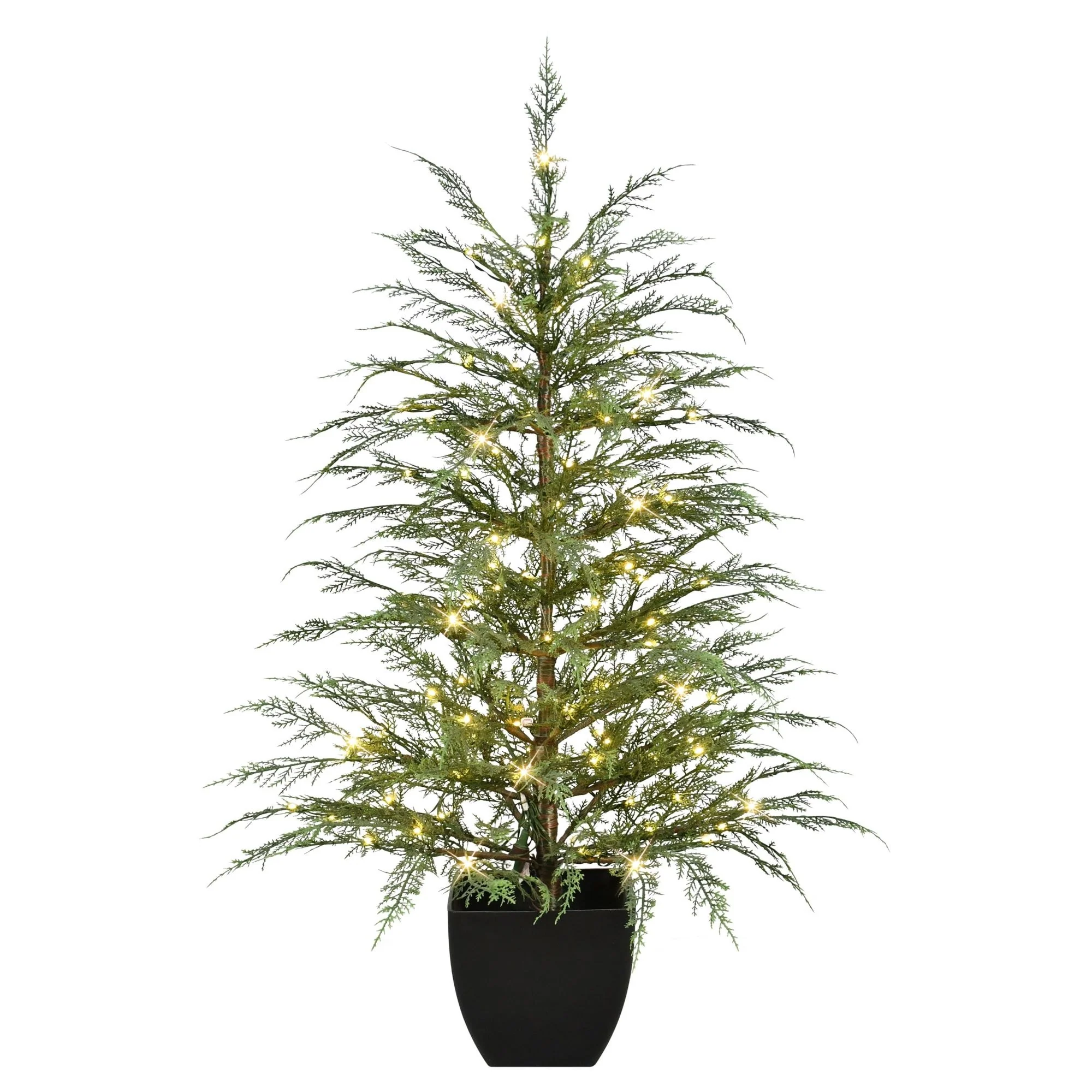 Pre-Lit Potted Mountain Cedar Artificial Christmas Tree - 6' - White LED Lights