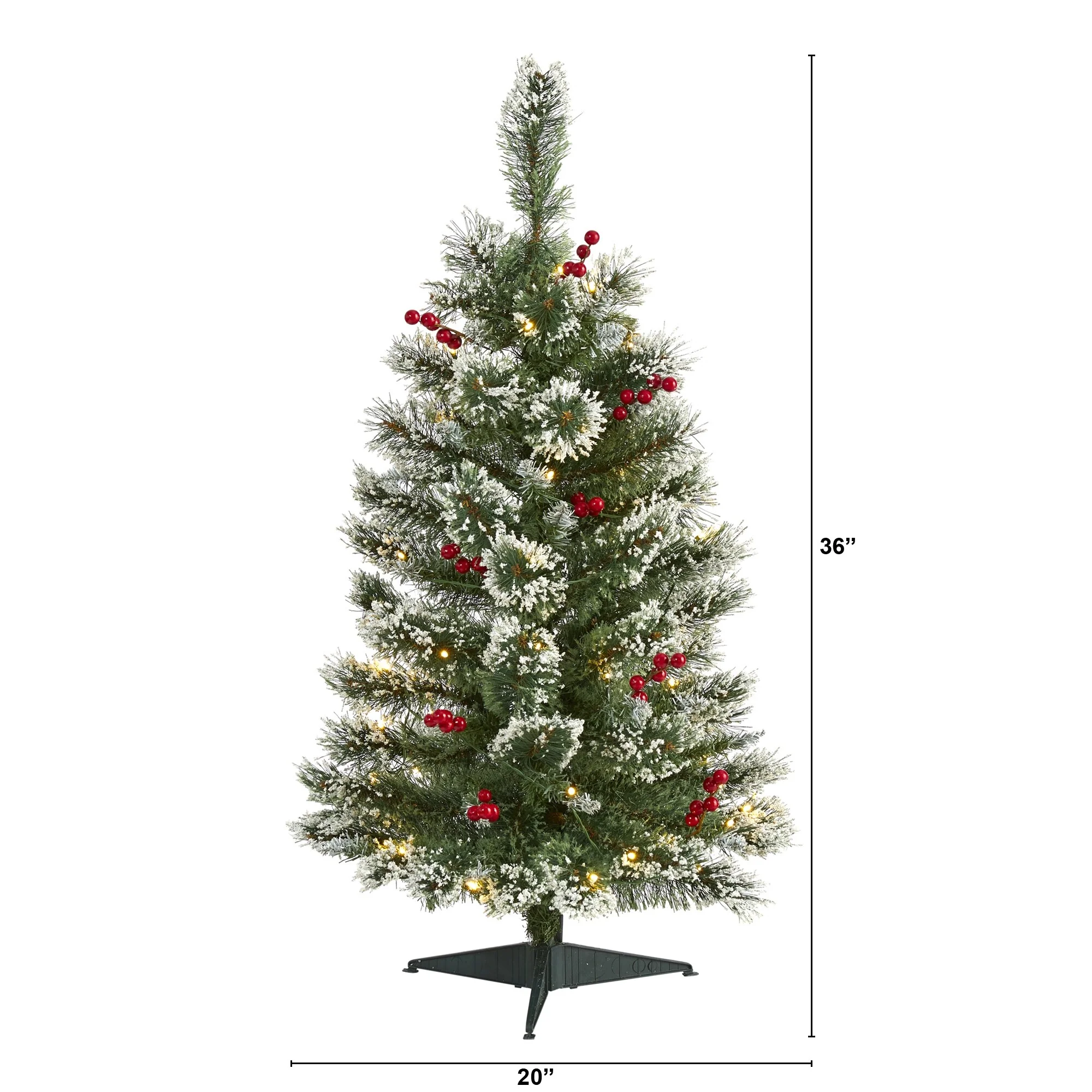 3’ Pre-Lit Medium Frosted Swiss Pine with Berries Christmas Tree, Warm Clear LED Lights - 3 Foot