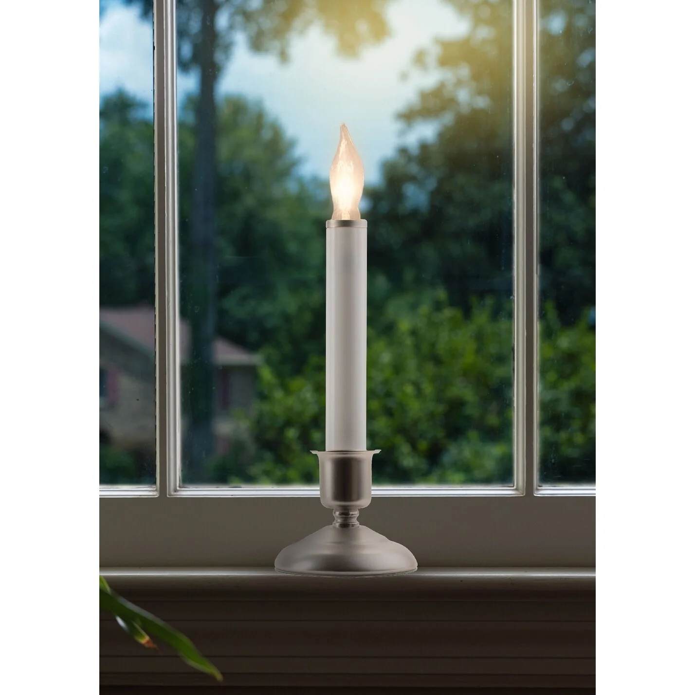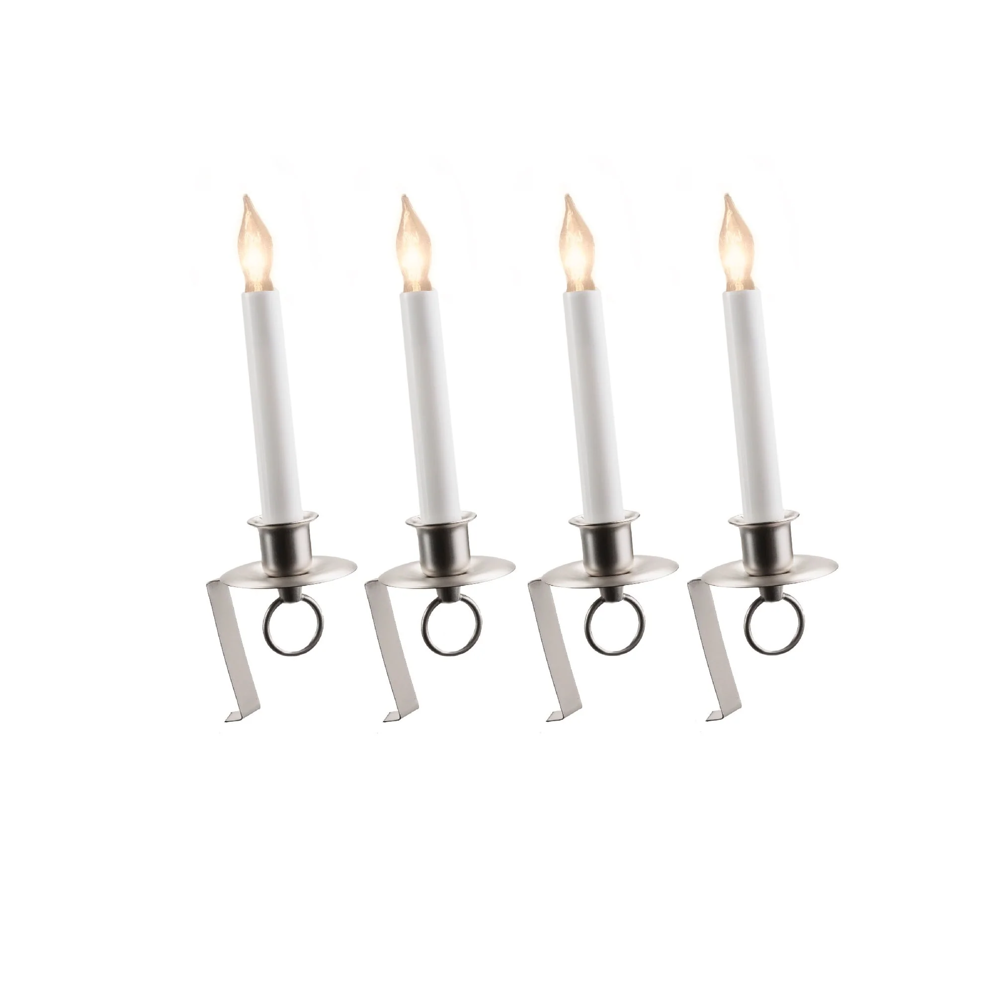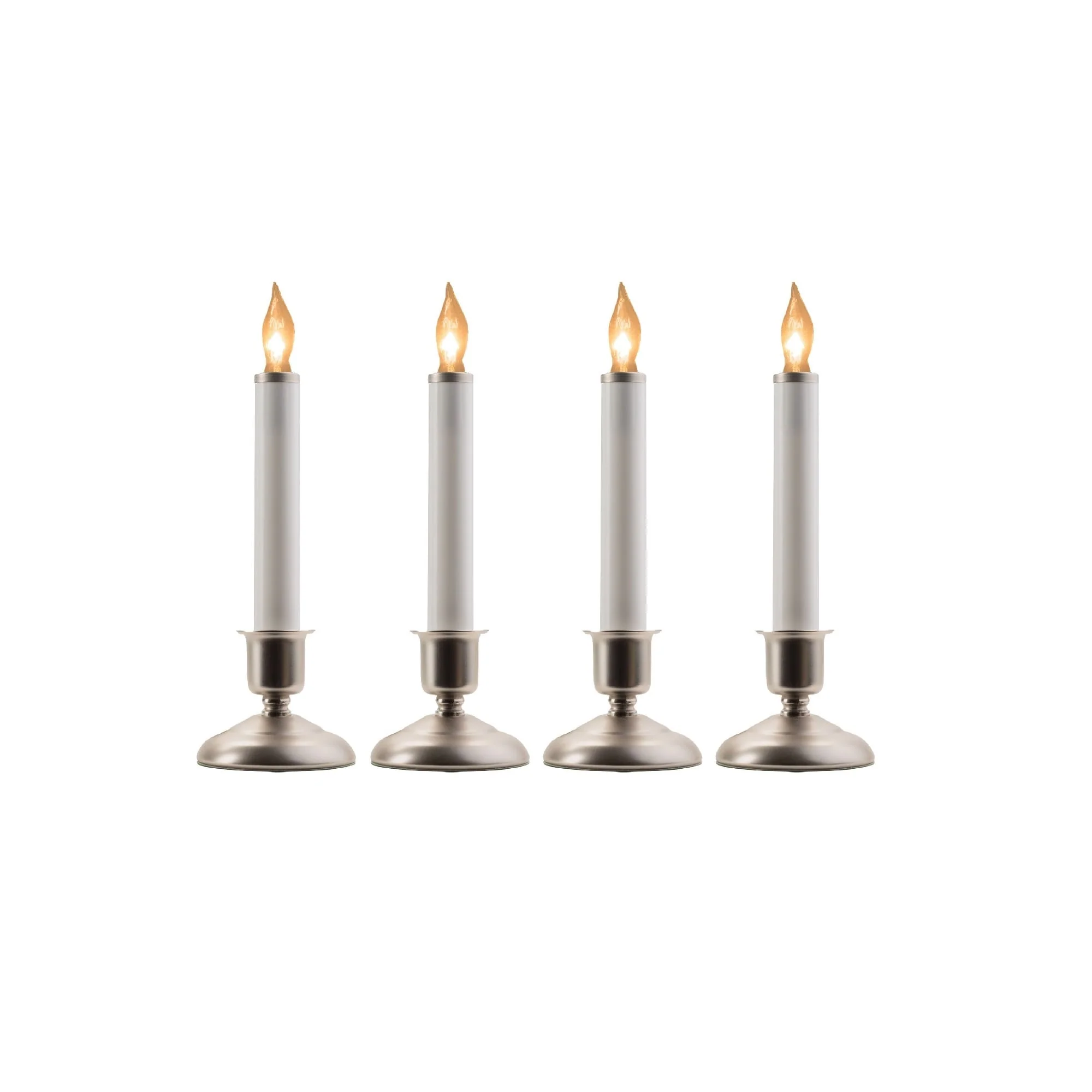 Set of 4 White Cape Cod Christmas Window Candle Lamps Silver Holder 9"