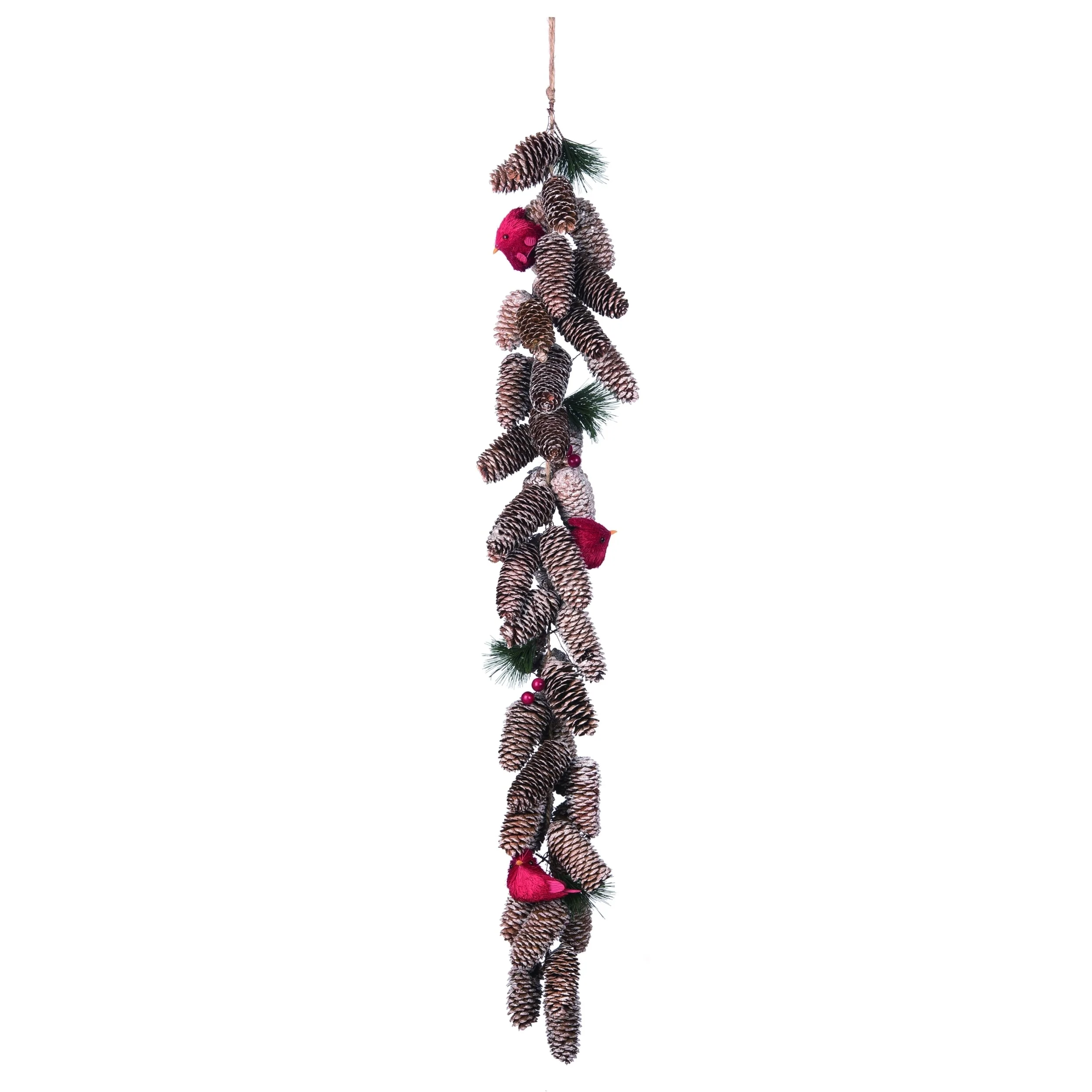 Transpac Natural Material 42 in. Green Christmas Pinecone with Cardinal Garland