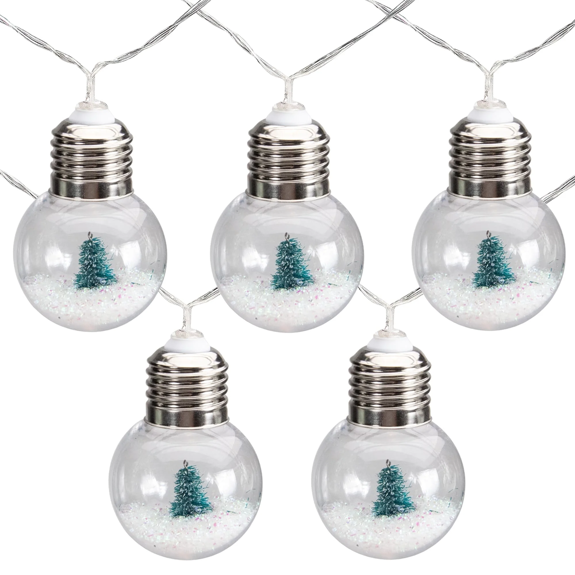 7-Count Clear Silver Glitter Retro Christmas Bubble Light Set, 6ft Green Wire