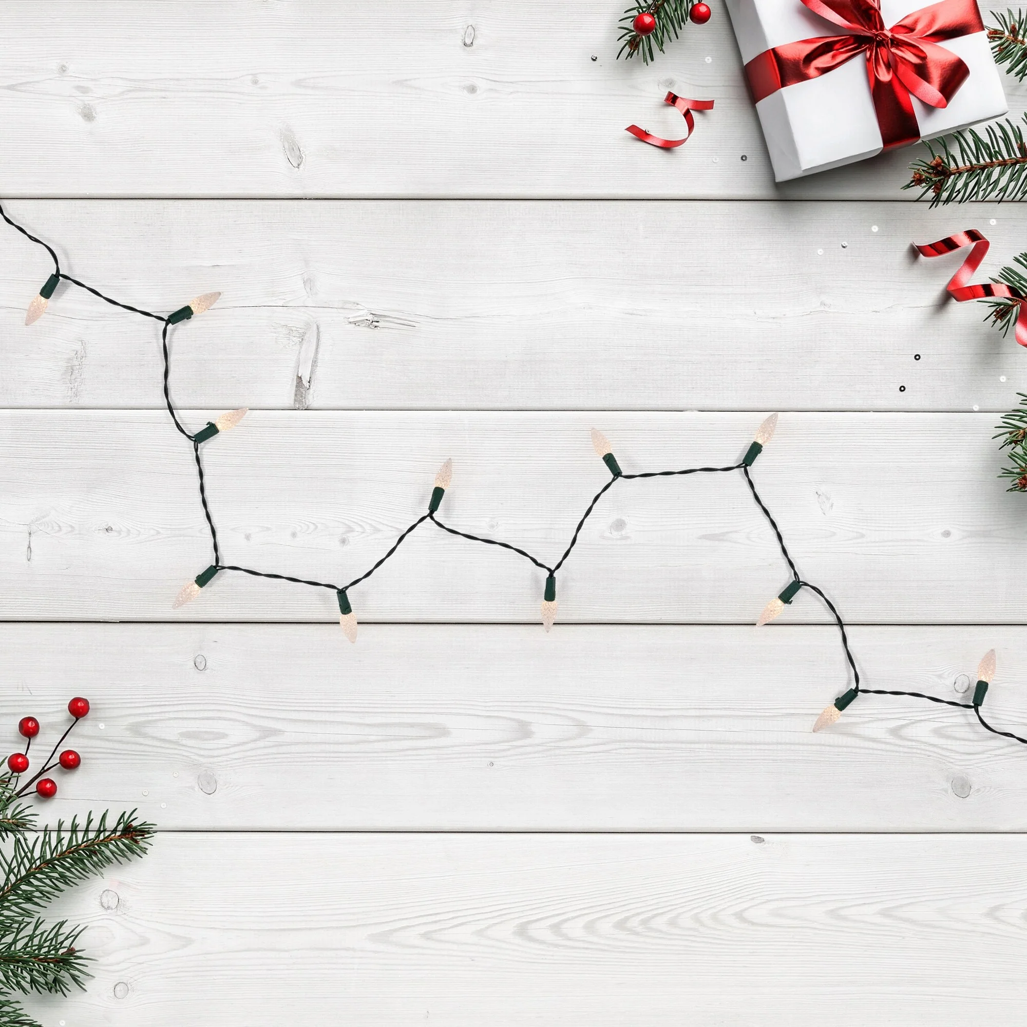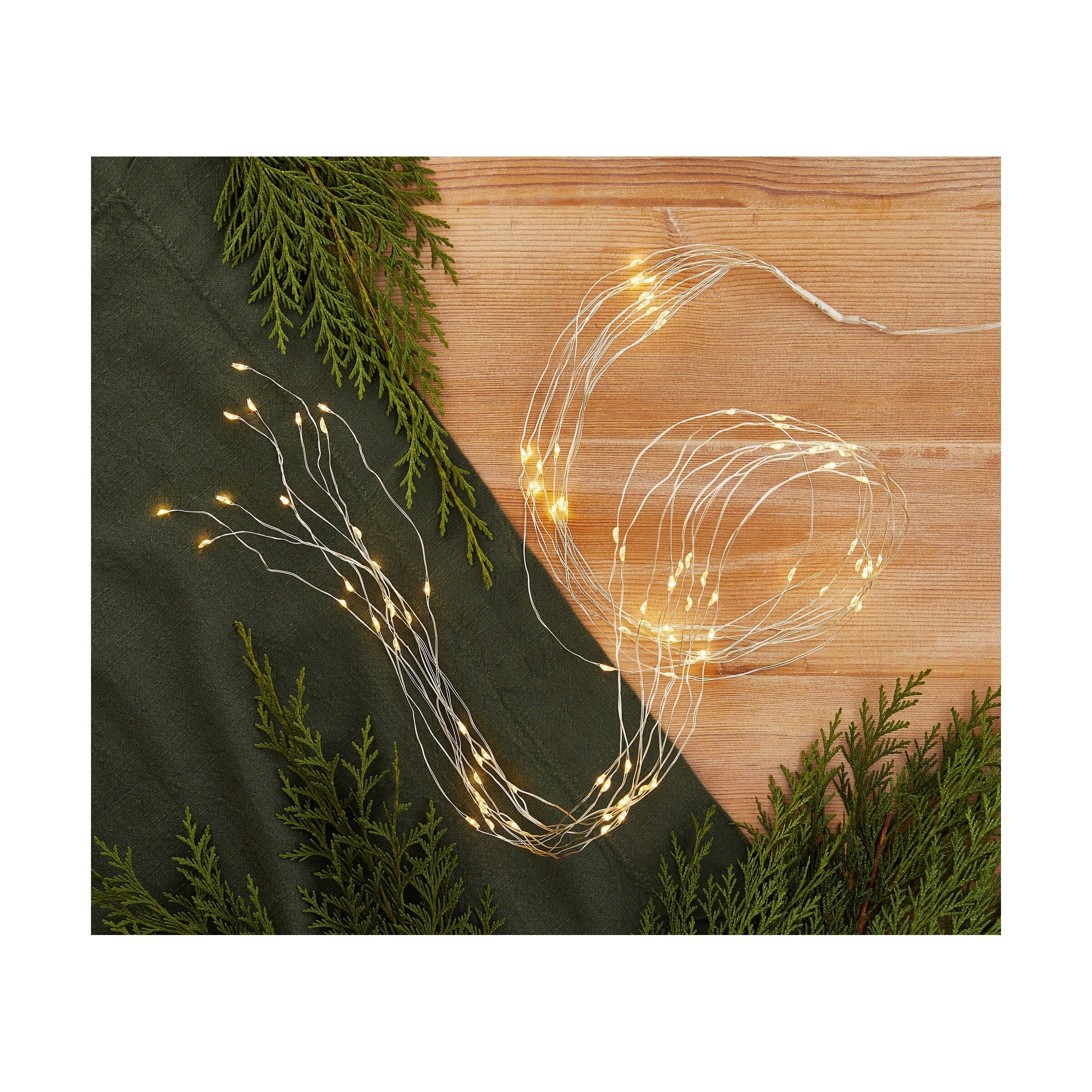 100-Count Warm White LED Mini Christmas Lights - 33ft, White Wire