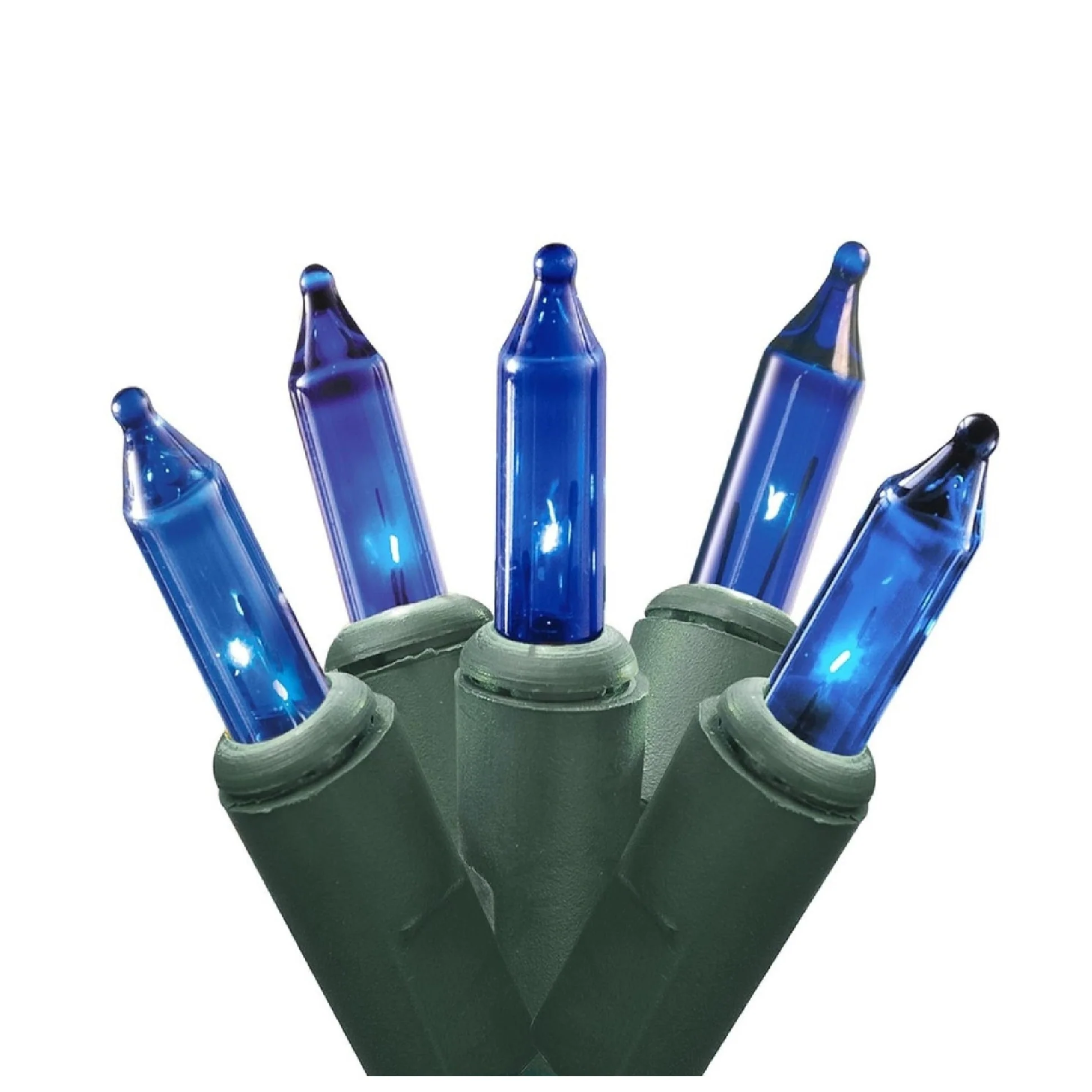 50-Count Blue Mini LED Christmas Lights, 16.25ft Green Wire
