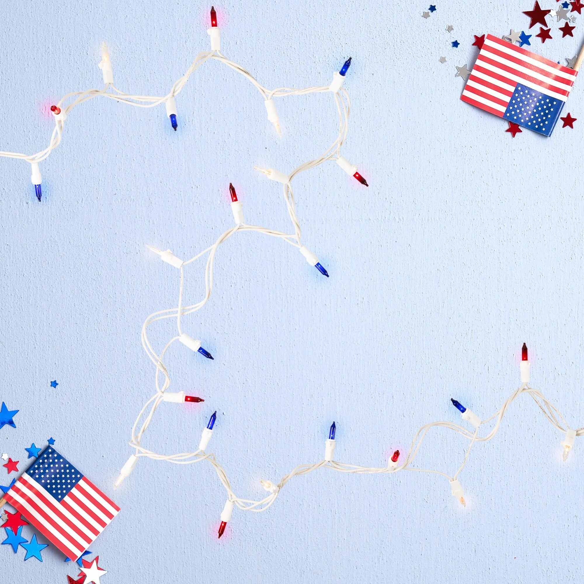Patriotic Mini Christmas Light Set - 20' - White Wire - 100ct