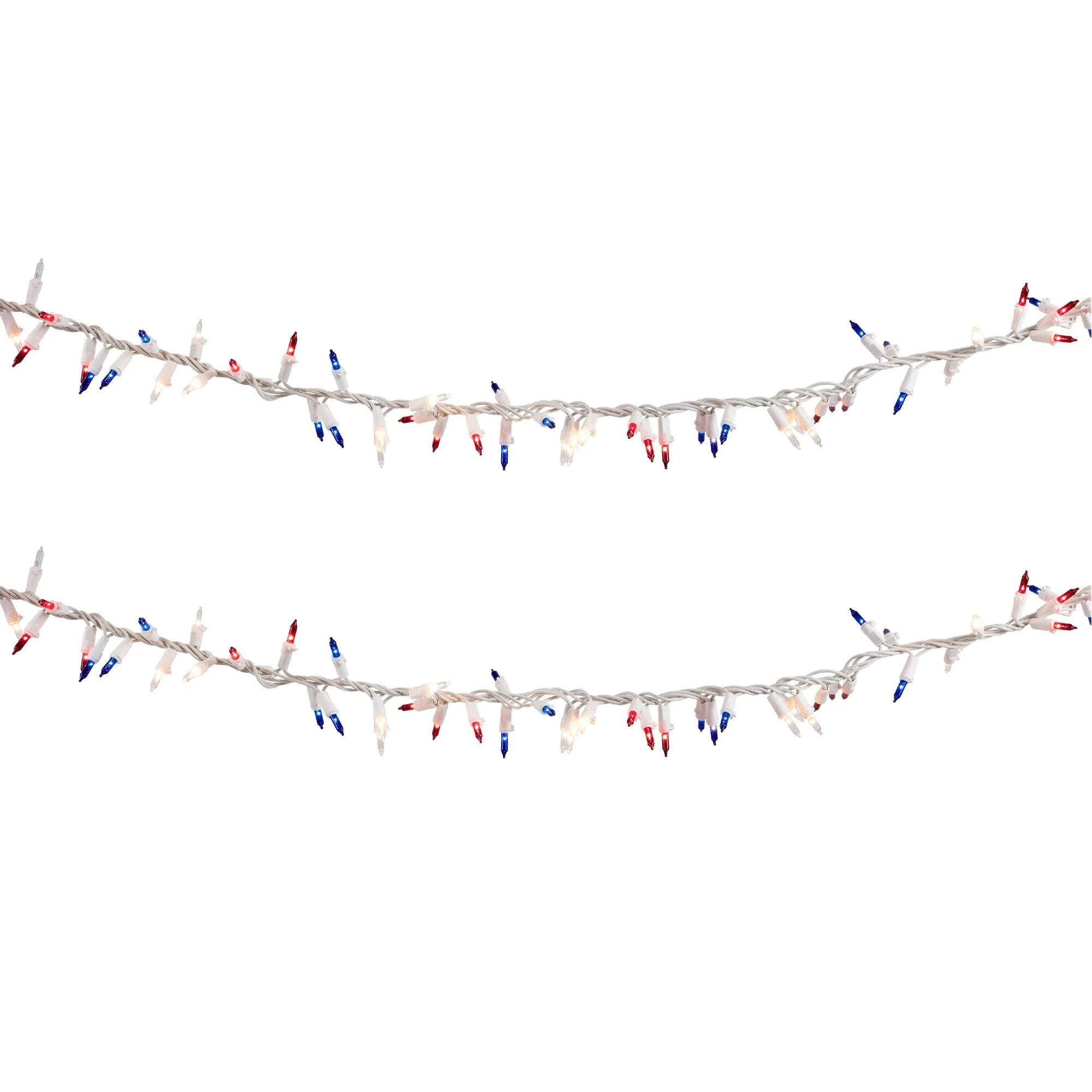 105 Count Red Clear Blue Patriotic Mini Light Garland 5.6' White Wire