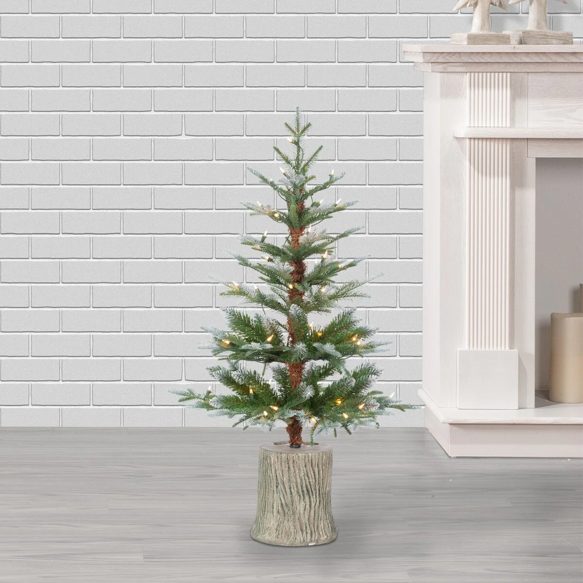 4 Ft Artificial Christmas Tree Pre-Lit Entrance Tree with LED Light